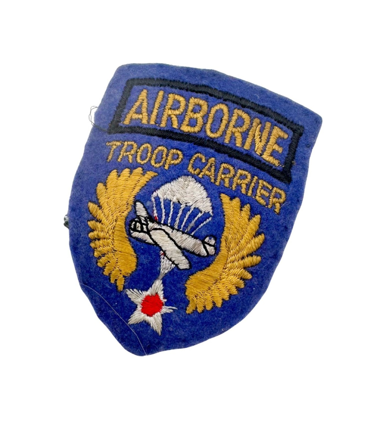 Superbe Patch Troop Carrier de fabrication britannique d'origine deuxième guerre. Ce patch est réalisé sur un fond bleu en feutrine typique des fabrications british made de l'époque. Patch en excellent état porté par les unités de planneurs américaines.