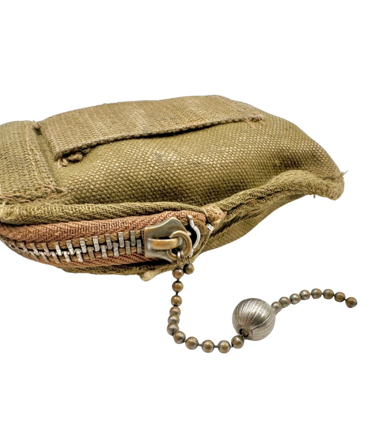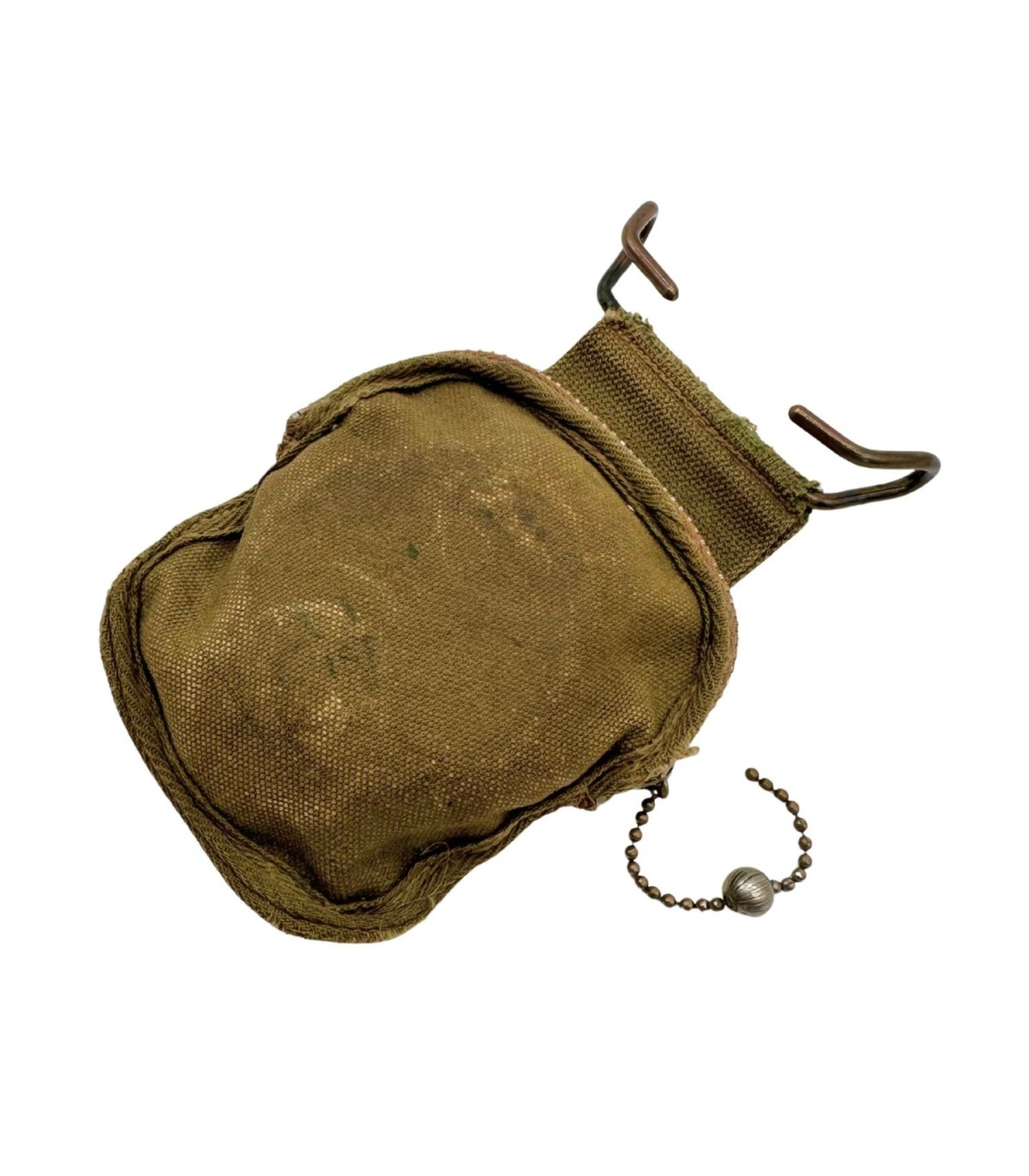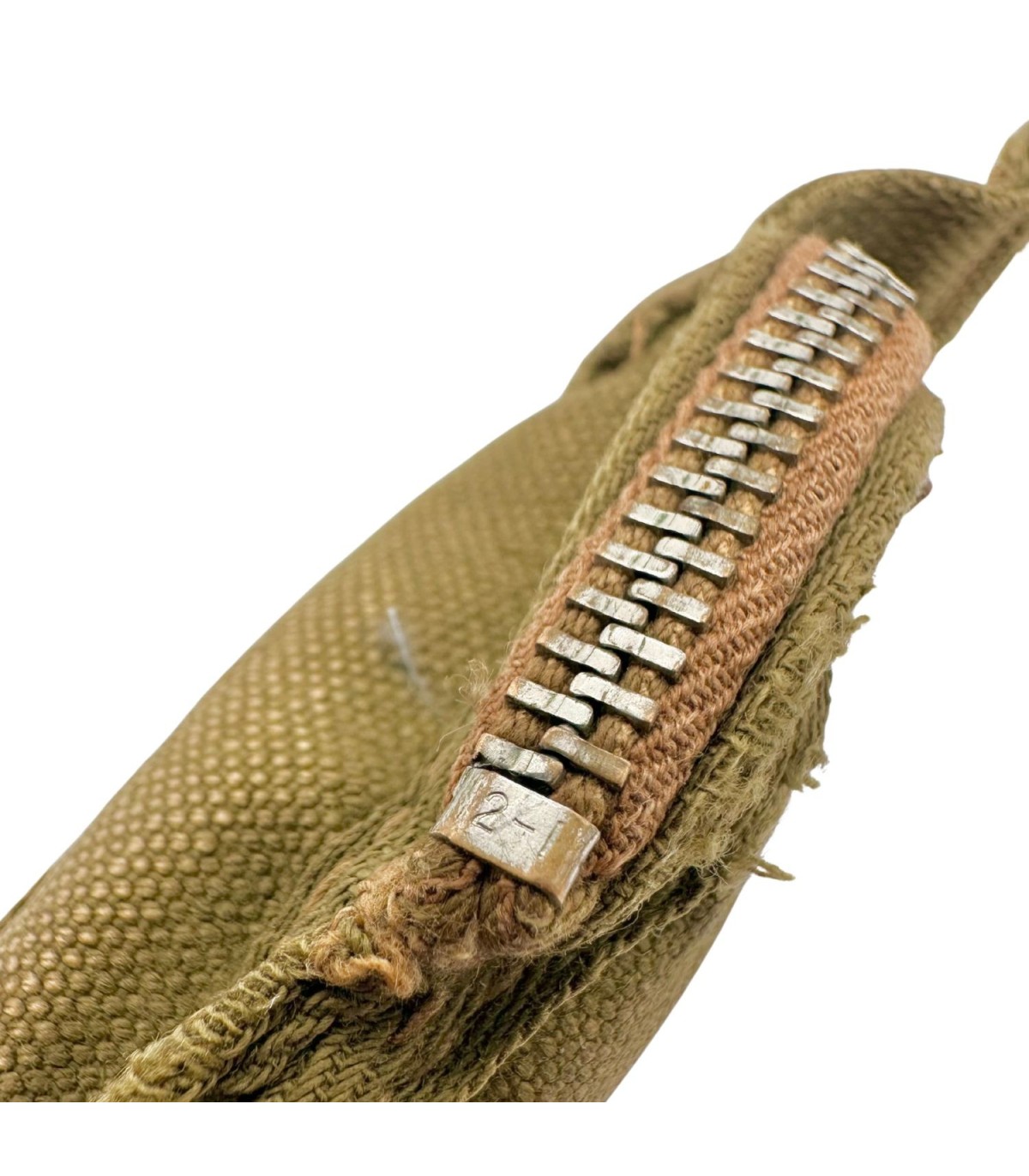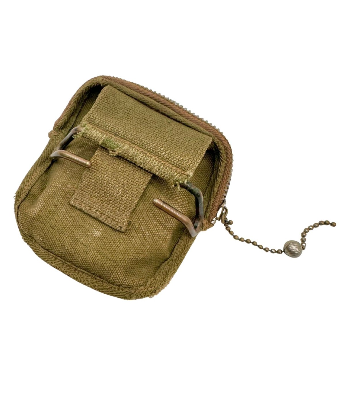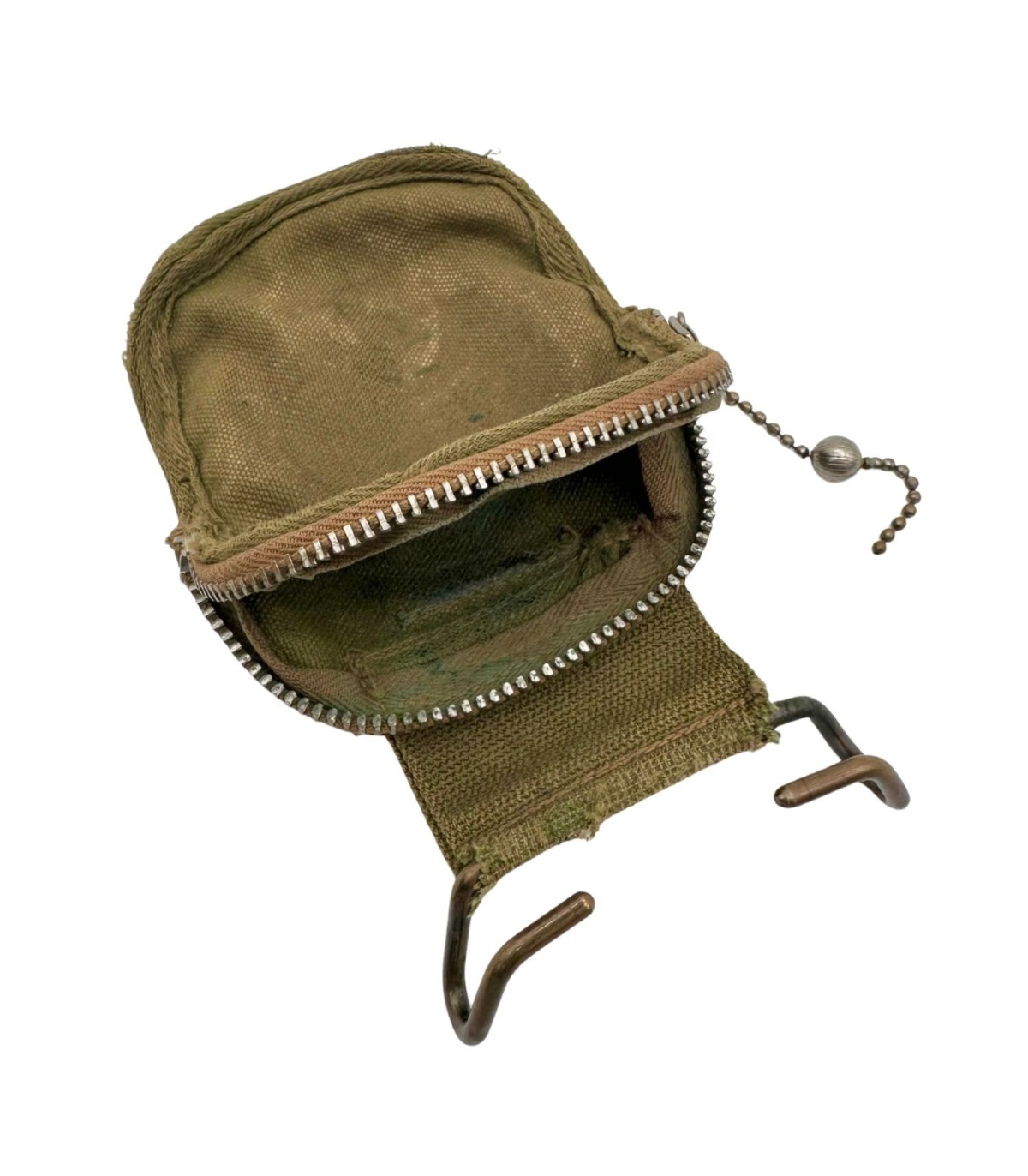 Boussole US d'origine deuxième guerre de premier type ; fermeture de la pochette par le biais d'un zip (fonctionnel). Fixation par le biais d'un crochet M-1910.