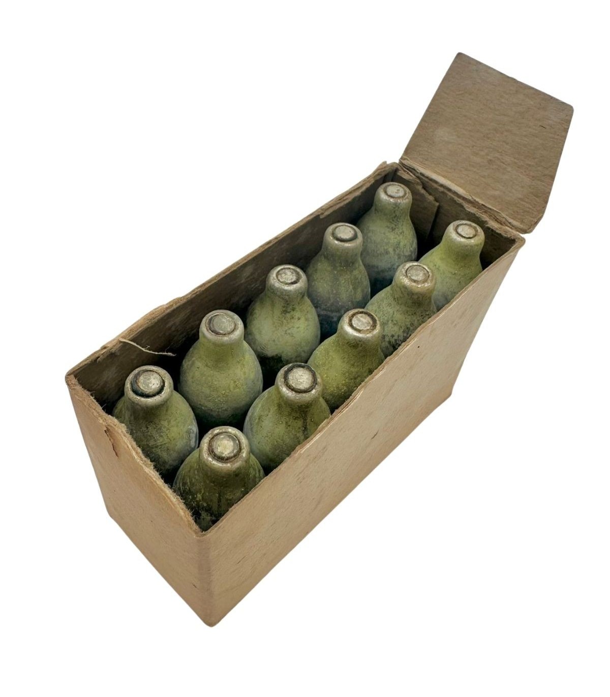 Attention : Pour des raisons de sécurité, de transport et de collection, cette cartouche est vide de gaz et totalement inerte. Elle est garantie authentique, dans un état de conservation remarquable pour un objet ayant plus de 80 ans, et possède la patine que seuls le temps et l'histoire peuvent créer.