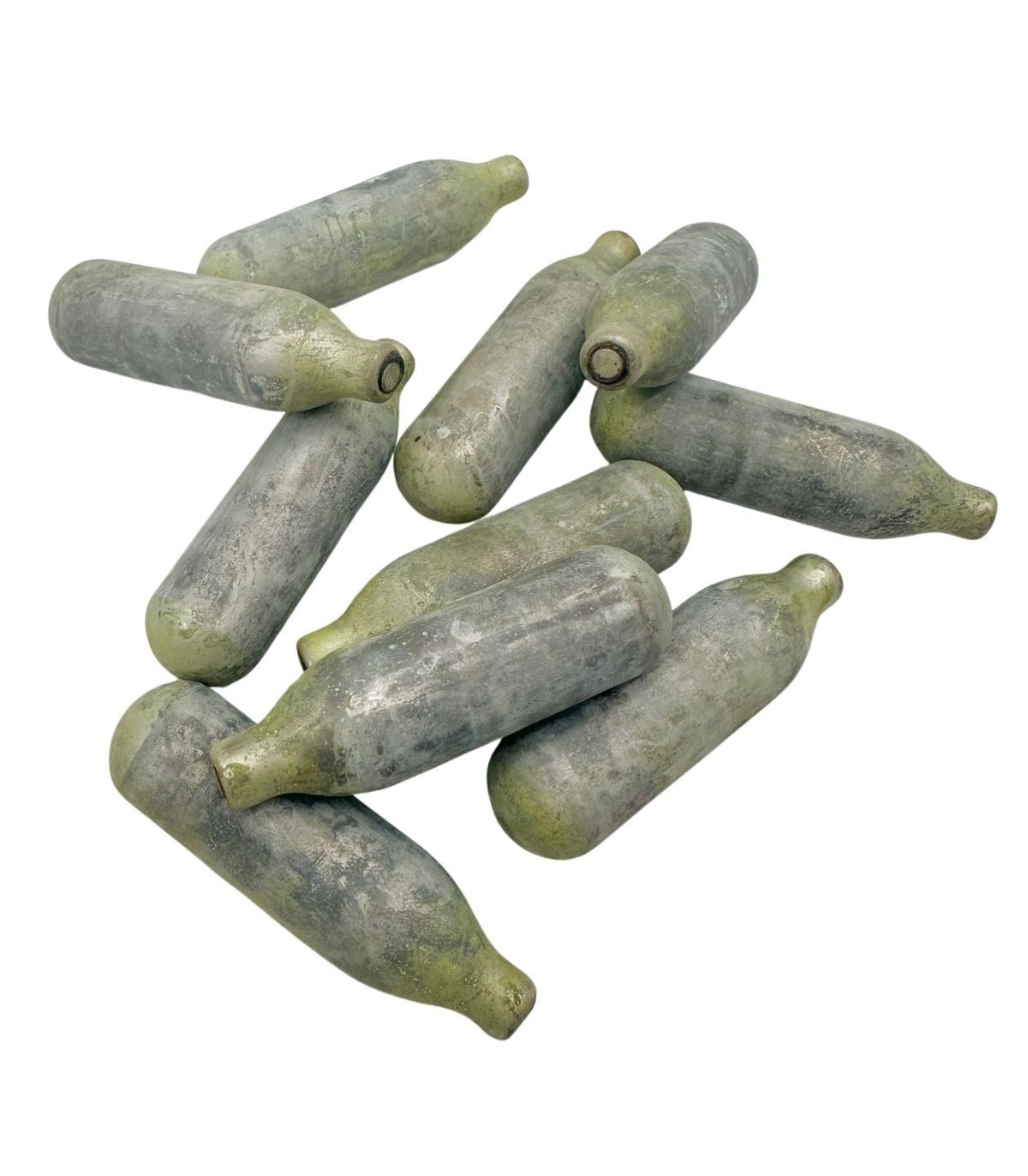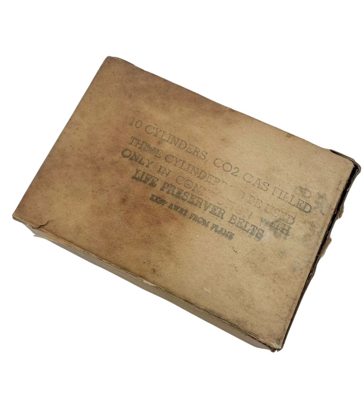 Cartouche de CO₂ authentique utilisée pour le gonflage des gilets de sauvetage individuels US Navy et USAAF ou les bouée USN M-1926 durant la Seconde Guerre Mondiale.