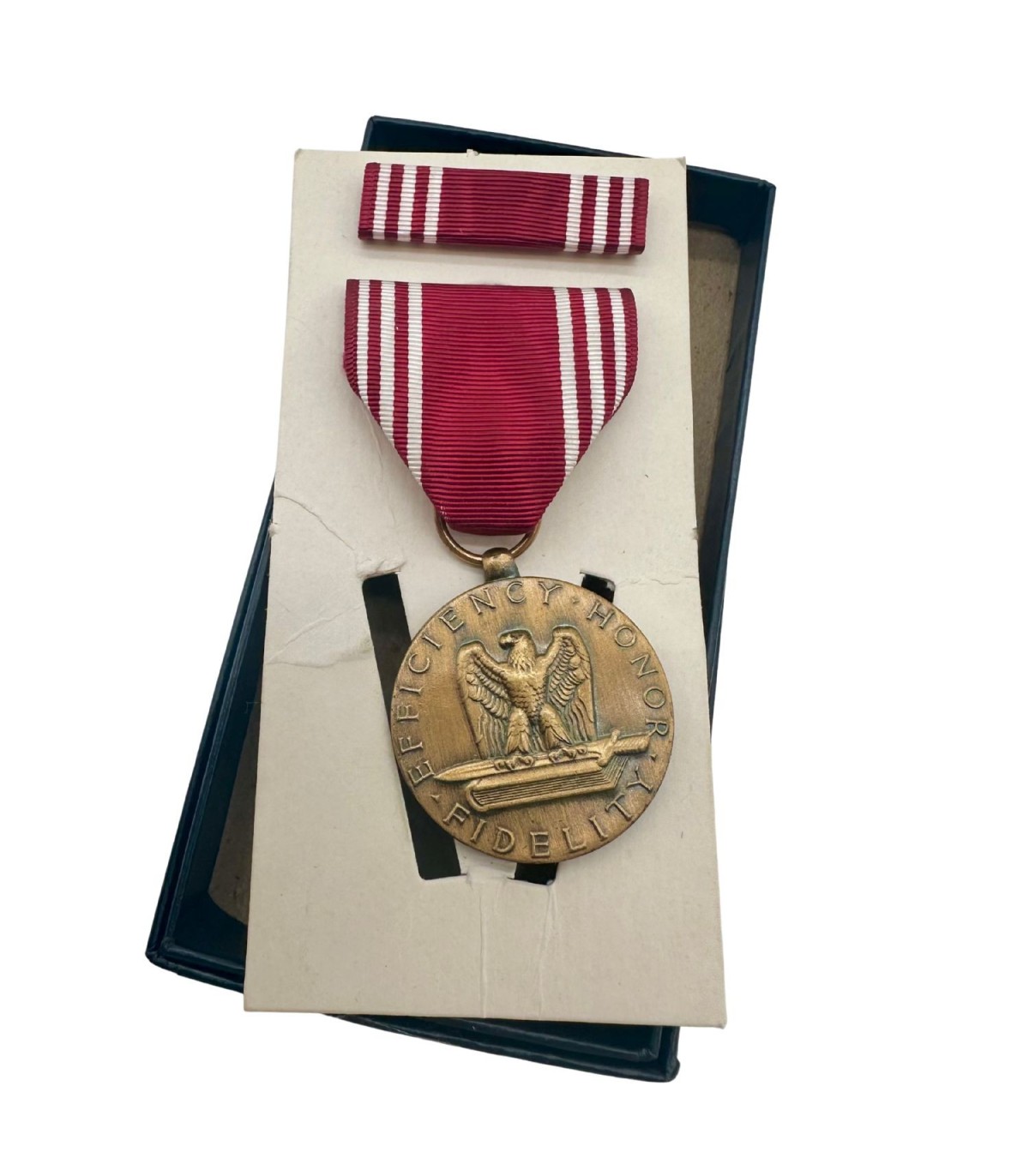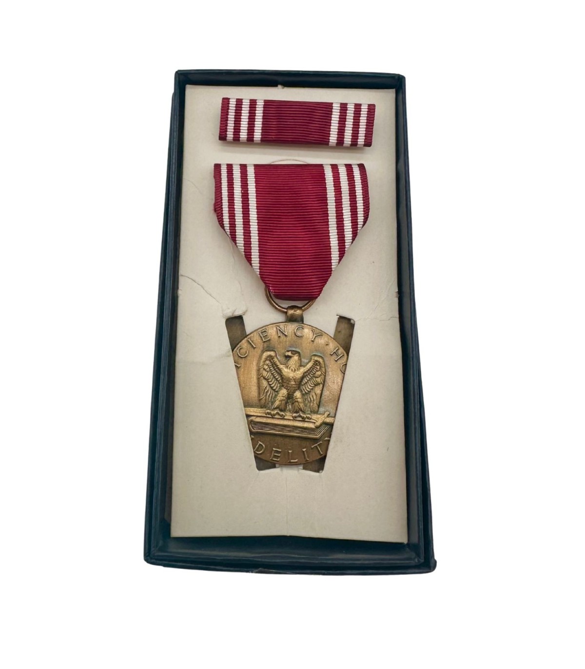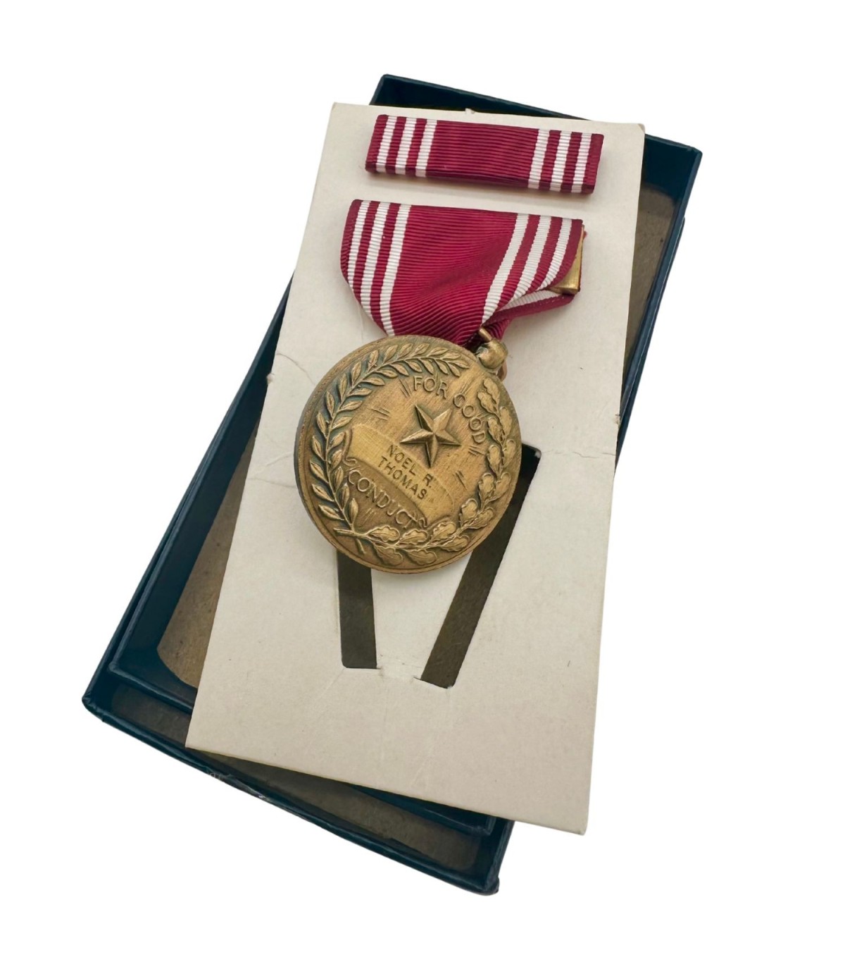 Origine et Histoire : Fabriquée aux États-Unis pendant les années 1940, cette médaille a été remise aux militaires qui ont fait preuve de bonne conduite, de fidélité et de service dévoué. Chaque médaille raconte une histoire unique de bravoure et de service, portant souvent des marques qui témoignent de son parcours à travers le temps.