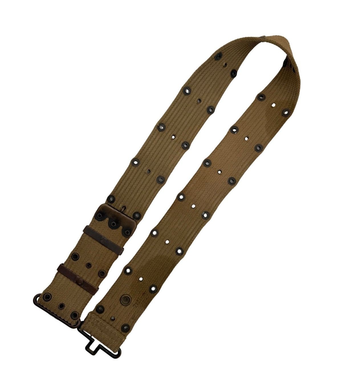 Le ceinturon M-1936 est la première pièce à acquérir pour débuter un mannequin de qualité. Le fait qu'il soit daté de 1942 et identifié par un Laundry Number lui donne une âme et une valeur historique supérieure. Il s'associe parfaitement avec le porte-carte, la gourde ou la pochette de pansement que vous possédez déjà pour former un ensemble cohérent et homogène.