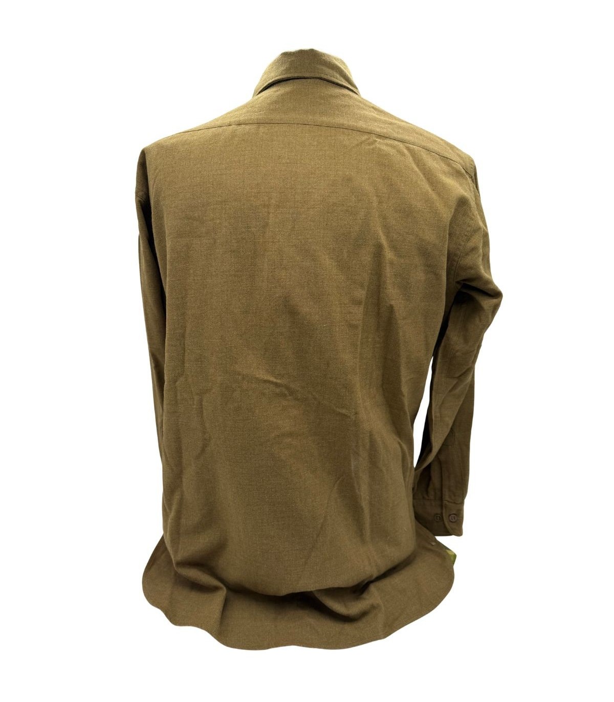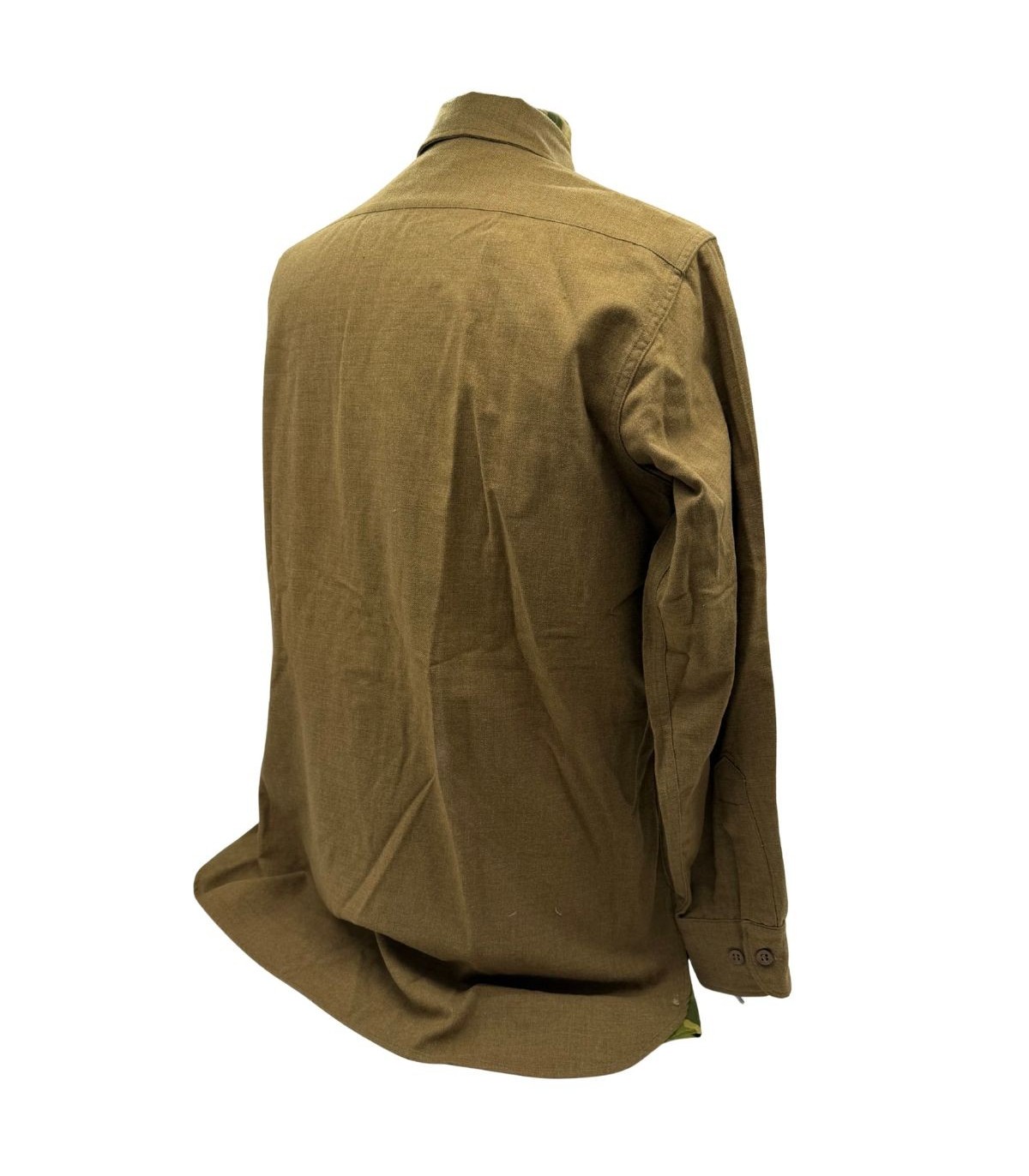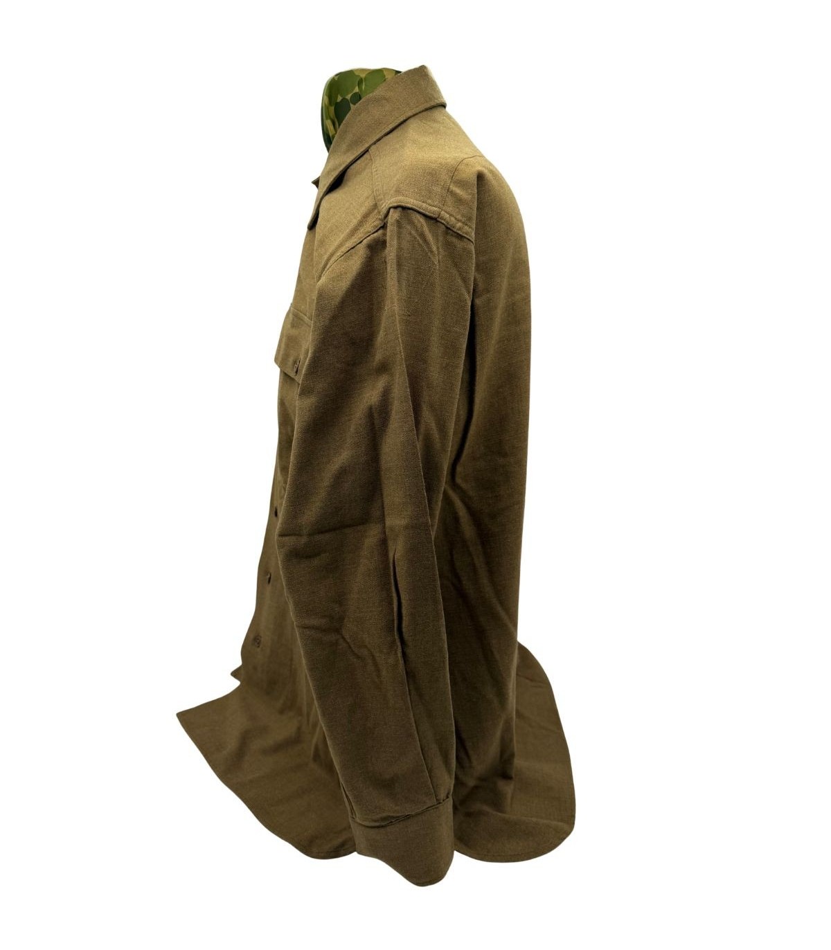Chemise réglementaire US Army originale – Enlisted Man (troupe) en flanelle de laine légère Olive Drab Shade 33, portée par l’ensemble des soldats américains durant la Seconde Guerre mondiale. Indispensable sous une veste M-41, M-43 ou portée seule en tenue de service.