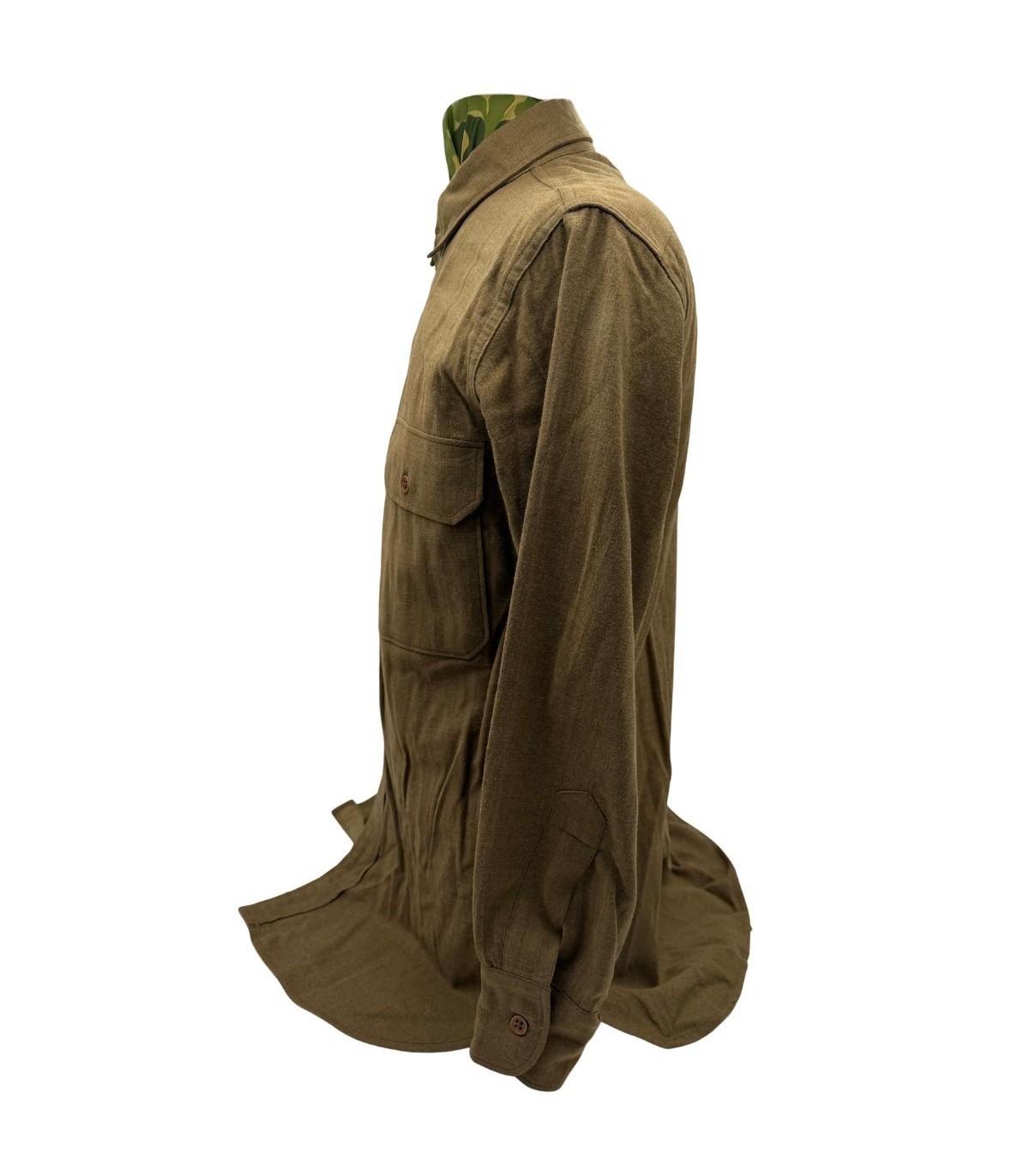 Produite le 30 janvier 1942, moins de deux mois après l'entrée en guerre officielle des États-Unis, cette chemise est un témoin direct de la période de mobilisation massive. C'est le modèle exact porté par les GIs envoyés en Islande, au Royaume-Uni ou dans le Pacifique Sud dès le début du conflit.