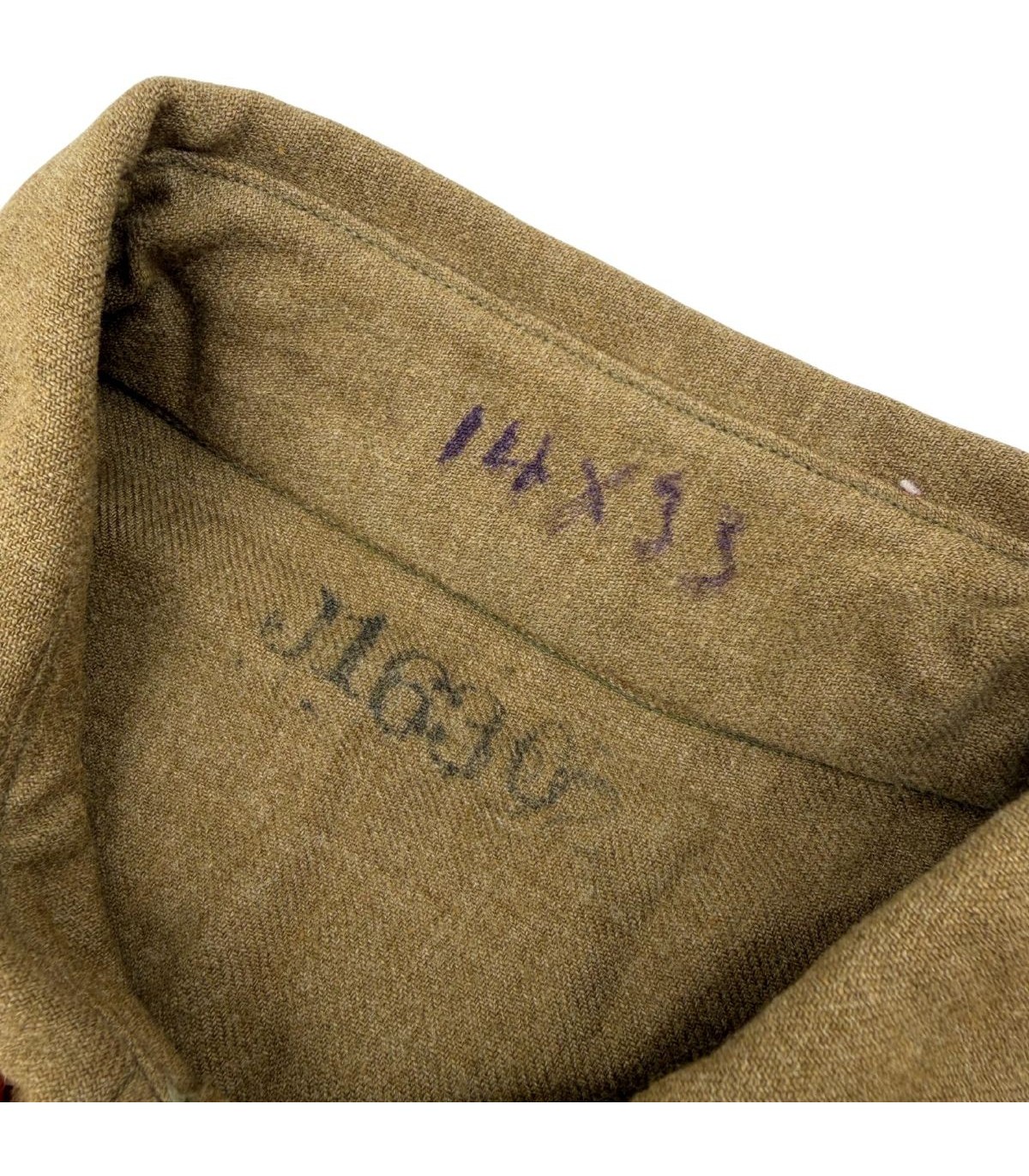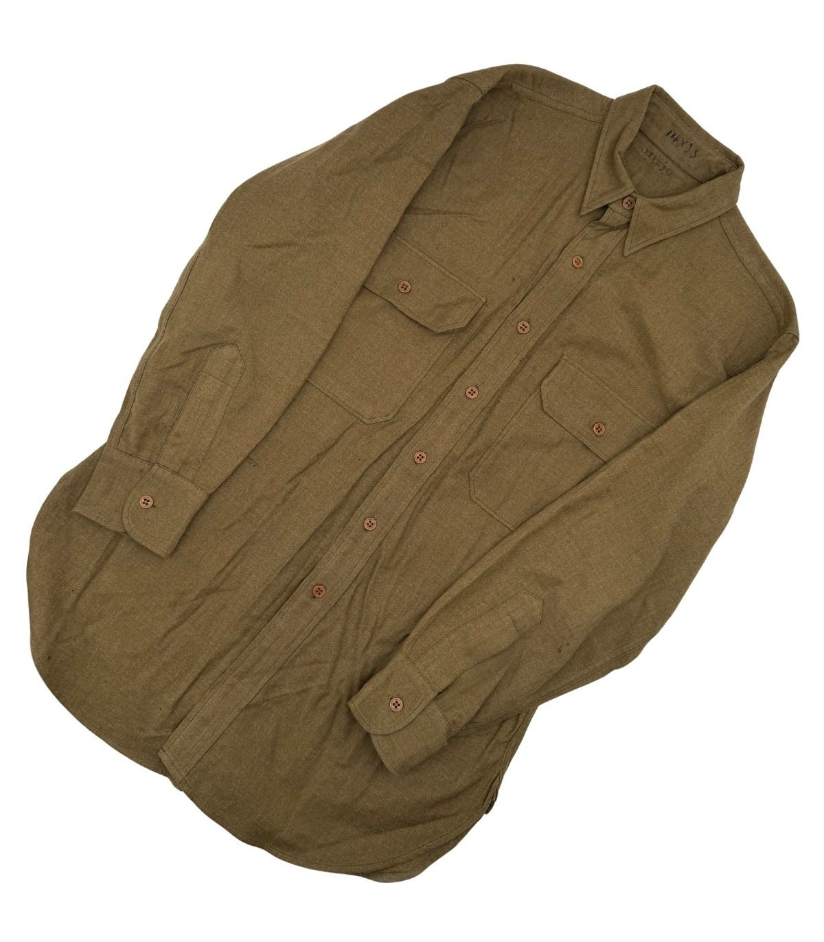 Étiquette Fabricant : Présence exceptionnelle de l'étiquette de contrat en tissu blanc, cousue dans le bas de la chemise, certifiant la date de fabrication du 30 Janvier 1942.