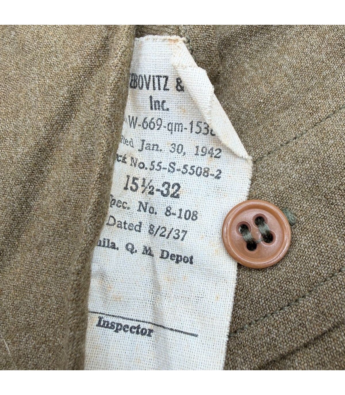 Aucun trou de mite, aucune usure au col ou aux poignets — point particulièrement remarquable pour une pièce de début 1942.