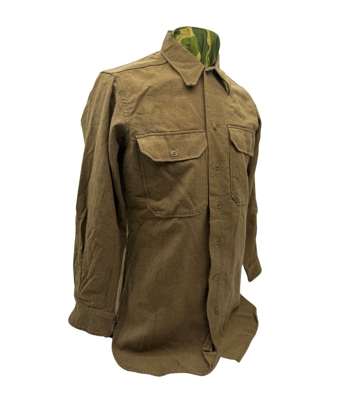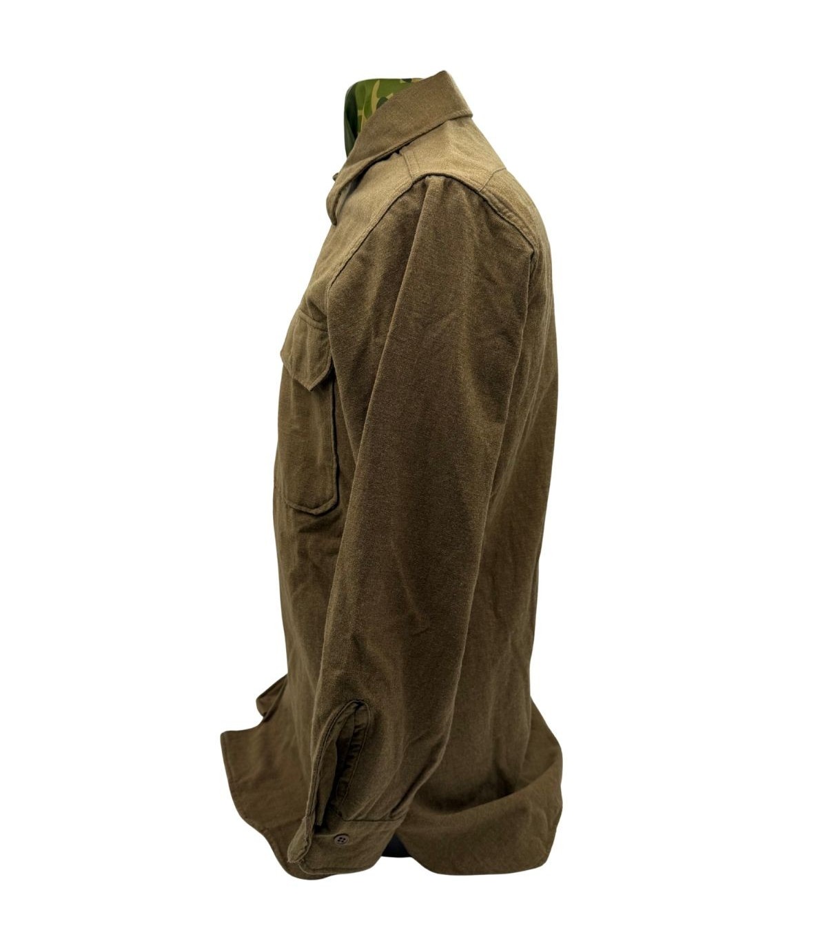 La chemise en laine Olive Drab (OD) est l'élément central de l'uniforme américain durant la Seconde Guerre mondiale. Qu'elle soit portée sous une veste de combat ou en tenue de sortie, elle est le témoin quotidien de la vie du soldat, du camp d'entraînement jusqu'aux lignes de front.