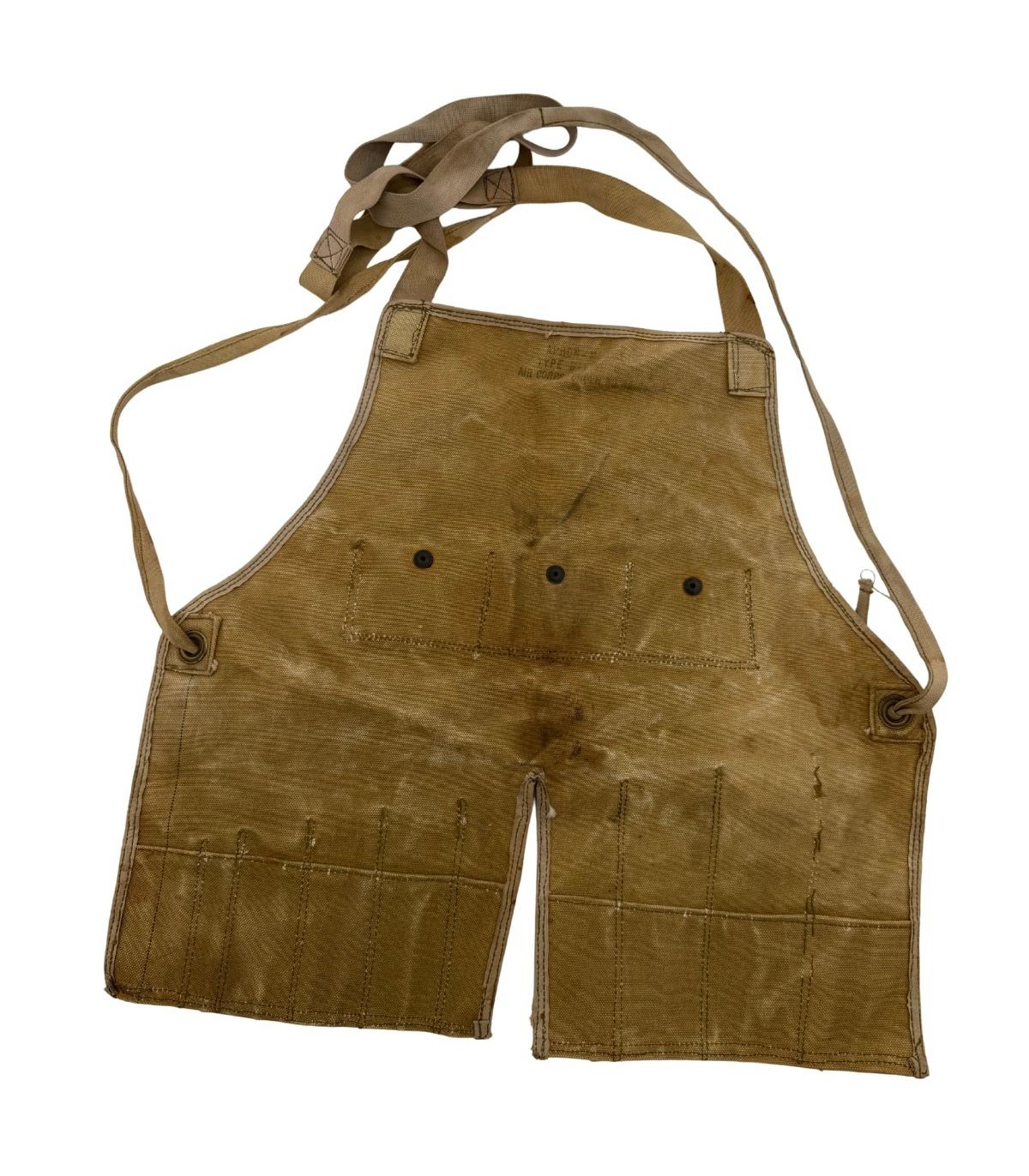 Le tablier Type B-1 était la protection standard des "Grease Monkeys" (les mécanos) chargés de l'entretien des moteurs de bombardiers, des chars ou des Jeep. Conçu pour protéger la chemise et le pantalon moutarde des projections d'huile et de cambouis, cet accessoire est l'âme des zones techniques de l'armée américaine.