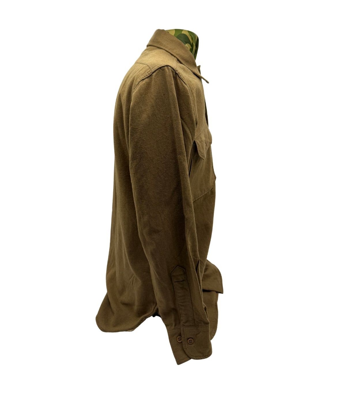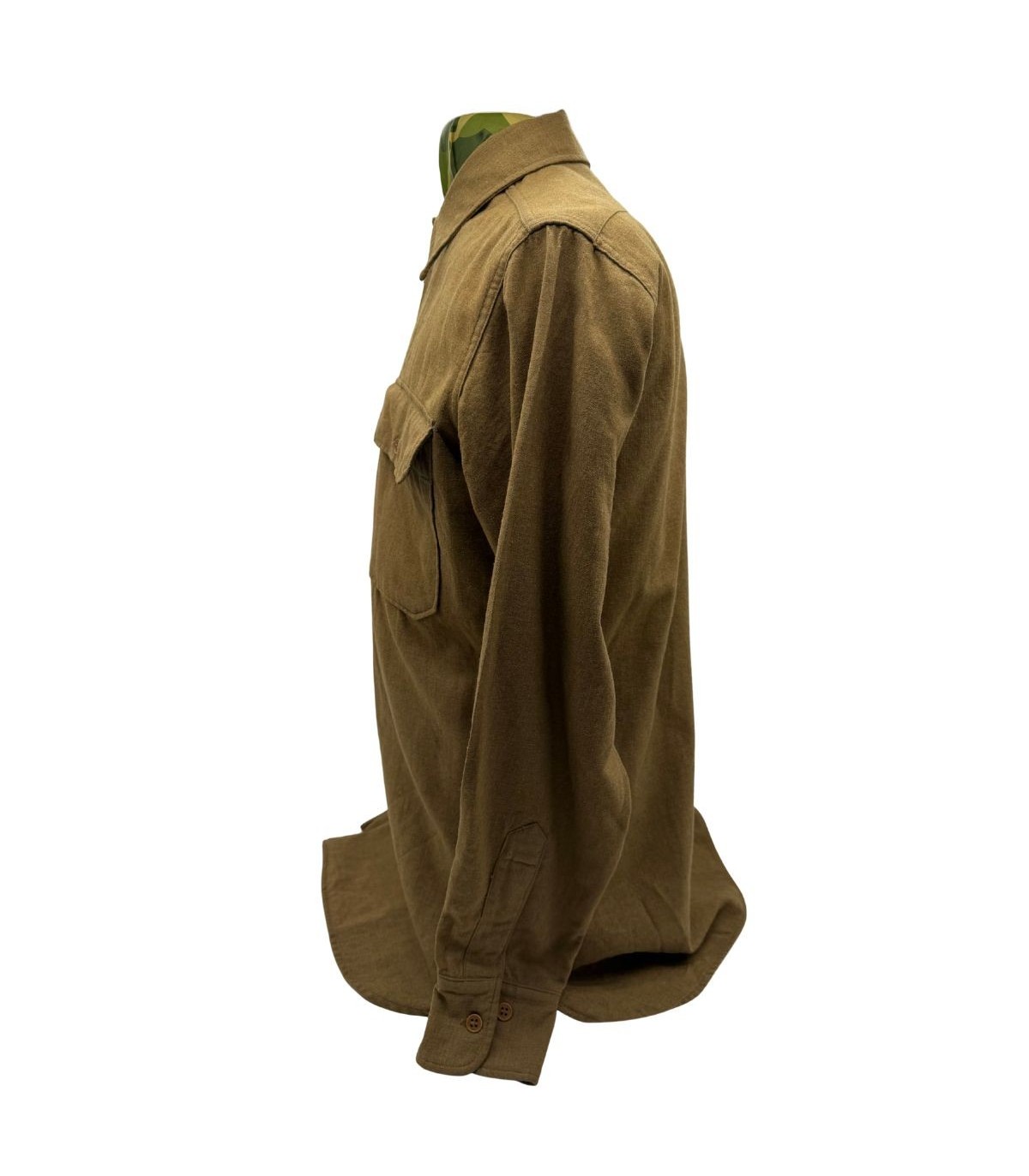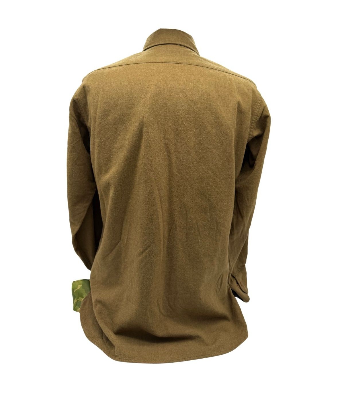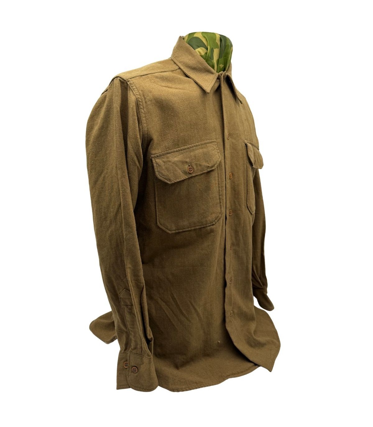 La chemise de troupe en laine, affectueusement surnommée "chemise moutarde" par les collectionneurs en raison de sa couleur caractéristique (Olive Drab Shade 33), était la pièce centrale de l'uniforme du soldat américain. Portée aussi bien sur le terrain que lors des sorties, elle est le symbole du fantassin de l'US Army.