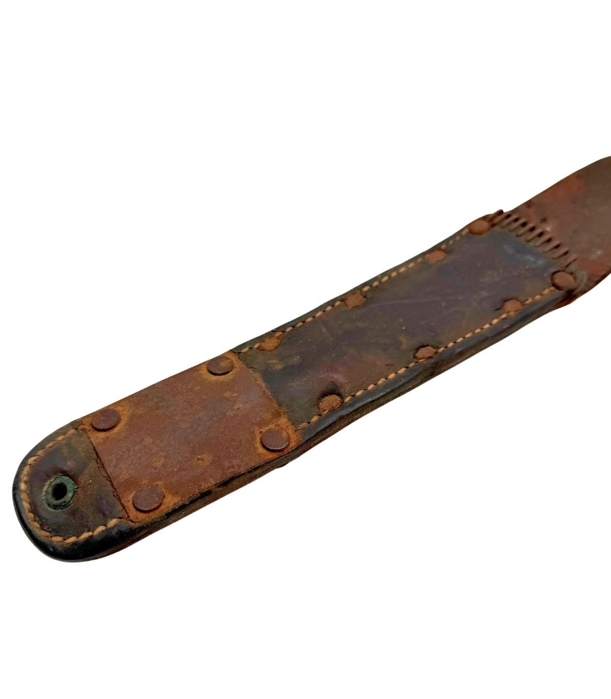Marquages : Le marquage du fabricant "MOOSE CO" et la date "1943" sont visibles sur le corps du fourreau.