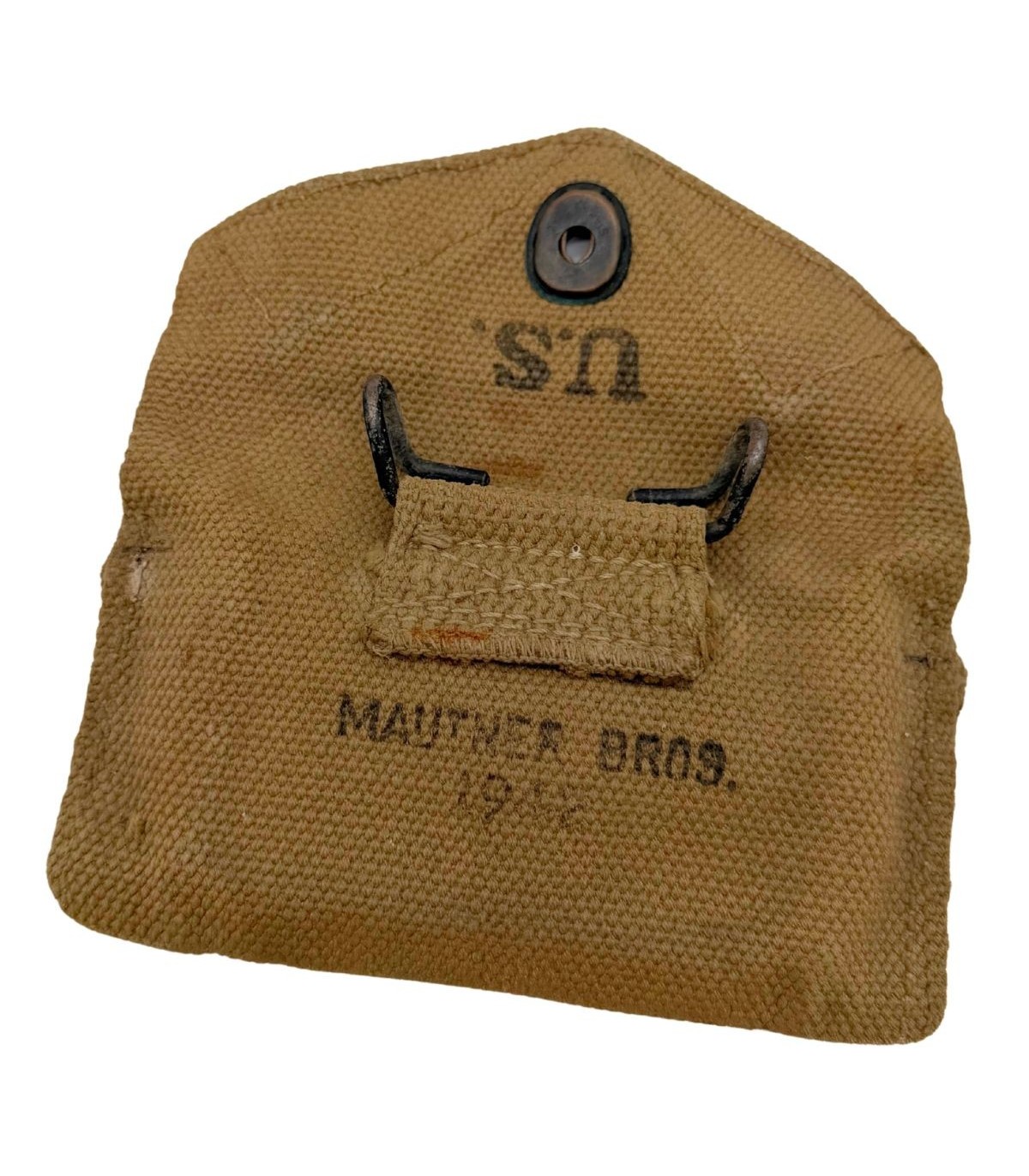 Ce modèle a été produit par Mautner Bros, un fabricant reconnu pour la robustesse de ses équipements en toile (webbing) durant le conflit.