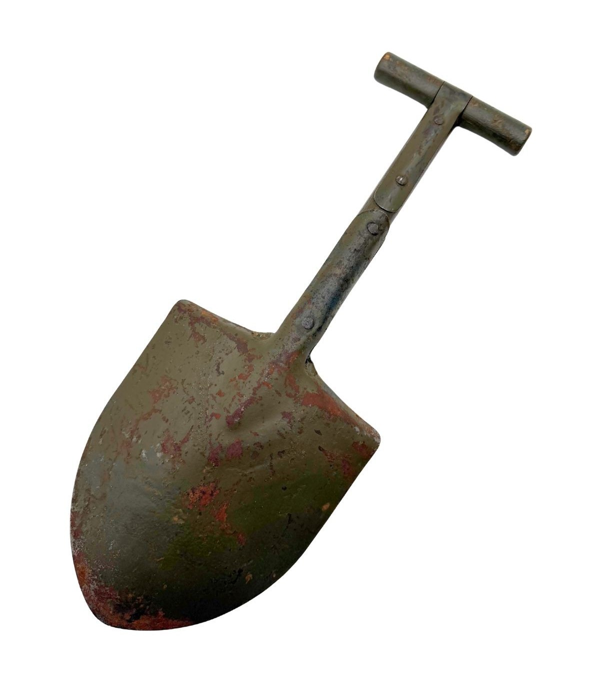 La pelle M-1910 à manche court et poignée en "T" est l'outil de terrassement standard de l'infanterie américaine au début du conflit. Cependant, son encombrement gênait les parachutistes lors des sauts. Pour y remédier, nombre d'entre eux ont raccourci le manche en bois afin qu'elle ne dépasse pas du sac ou qu'elle puisse être glissée plus facilement derrière le brelage. Cette modification "Combat Modified" est une signature visuelle des troupes aéroportées en Normandie.