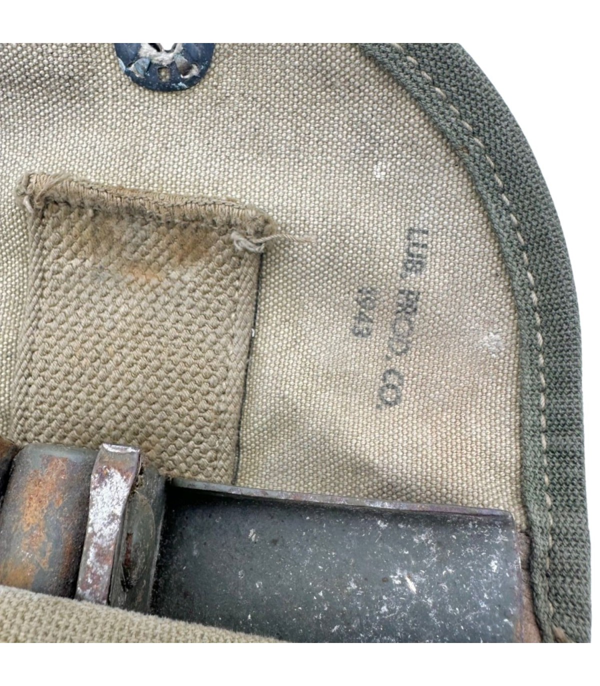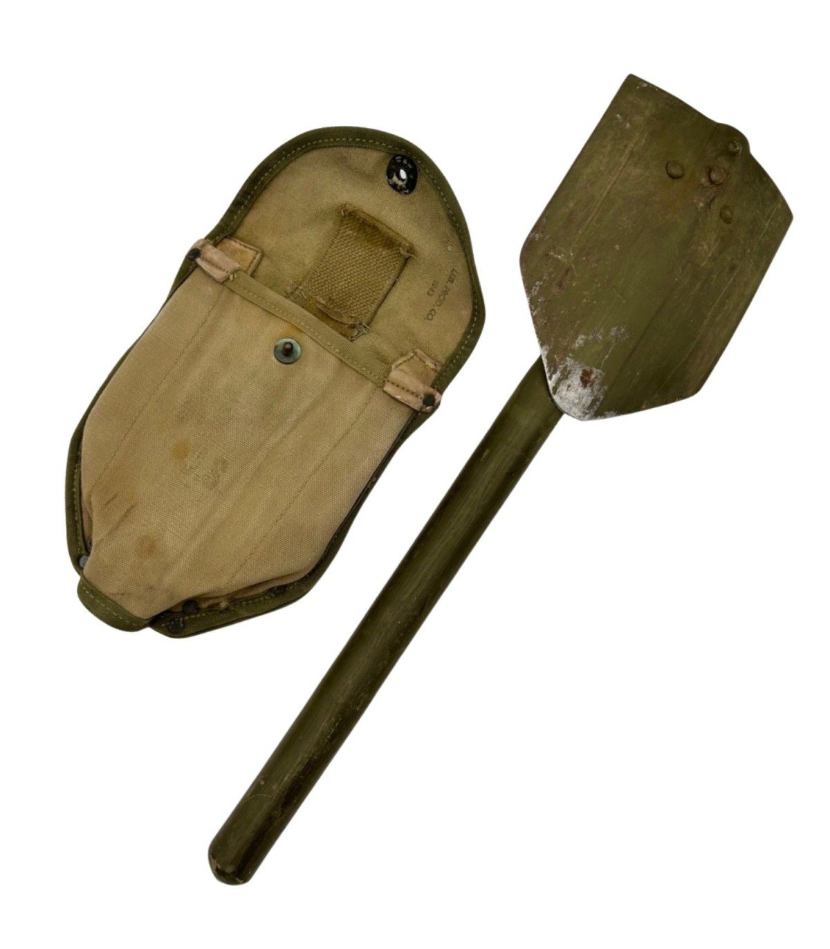 Pelle d'origine deuxième guerre M-1943. Cette pelle est composée d'une housse fabriquée par LUB PROD Co en 1943. La Pelle, fonctionnelle est quant a elle fabriquée par AMES en 1944. Superbe état.