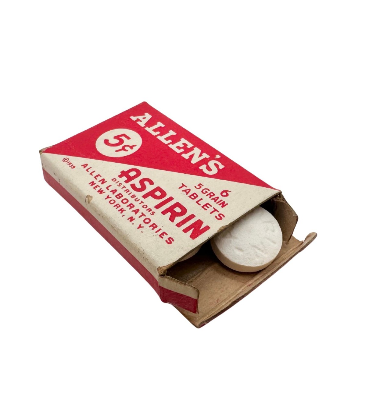 Allen’s 5 Grains Tablets – Boîte d’Aspirine Originale – Allen Laboratories, New York (WW2)