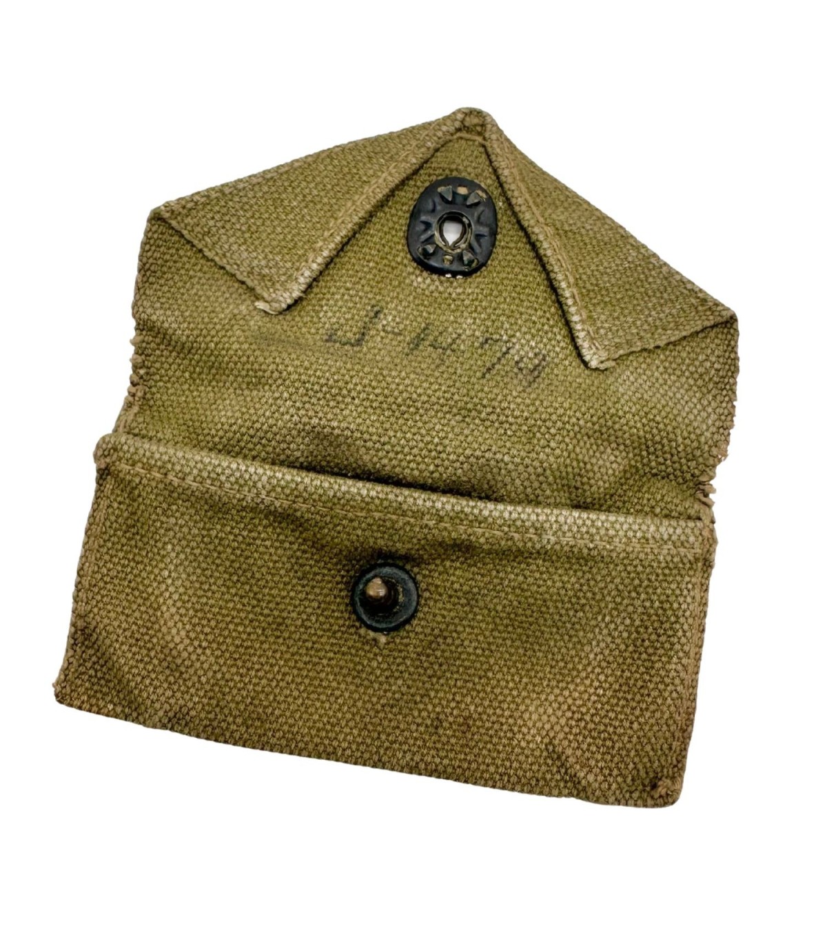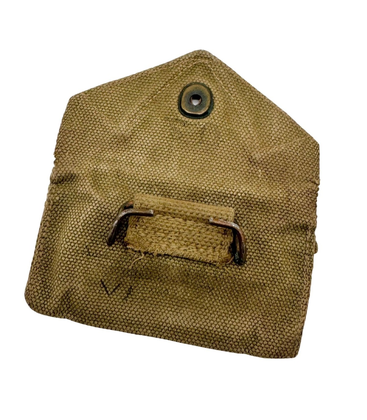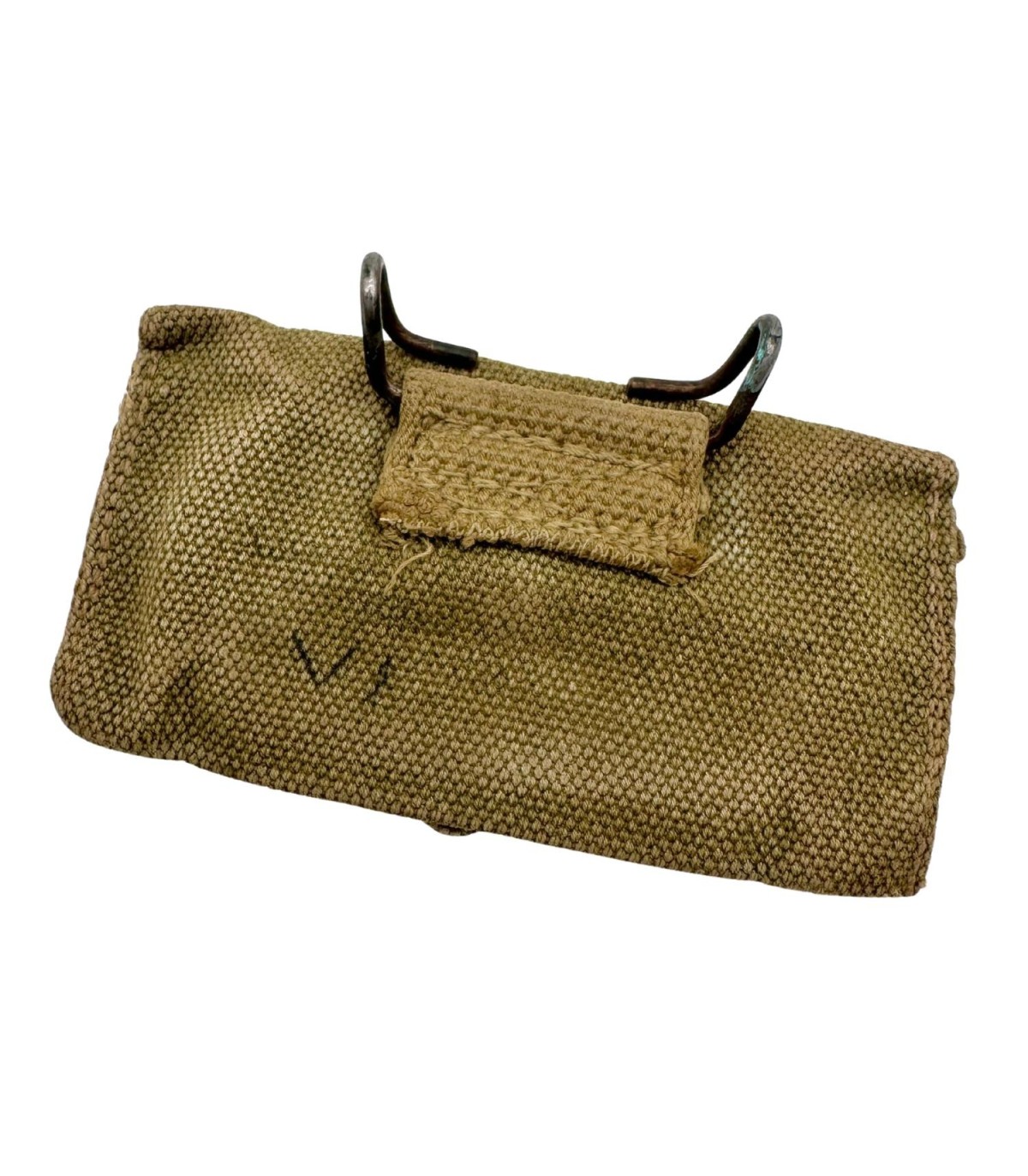 Pochette M-1924 de couleur OD3 et complète avec son crochet et sa pression fonctionnelle. Elle est dépourvue de son pansement CARLISLE.