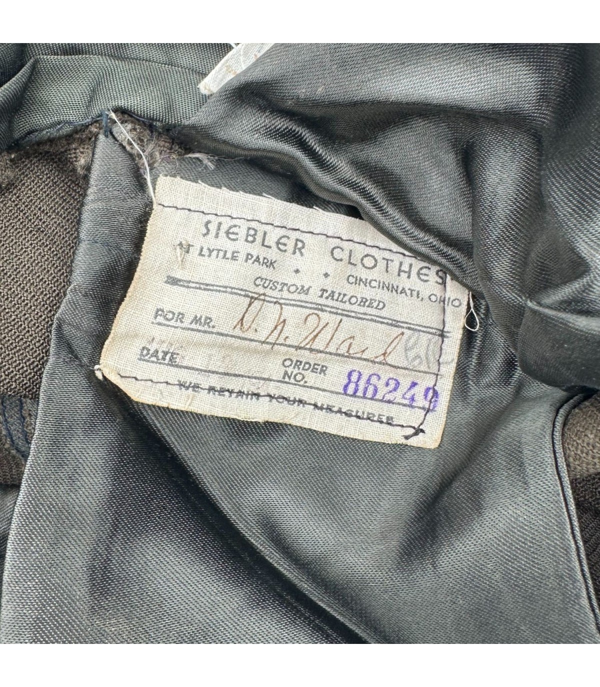Ce pantalon du tailleur SIEBLER CLOTHER est daté du 18 Aout 1943. Il est nominatif ; D. N. Ward.