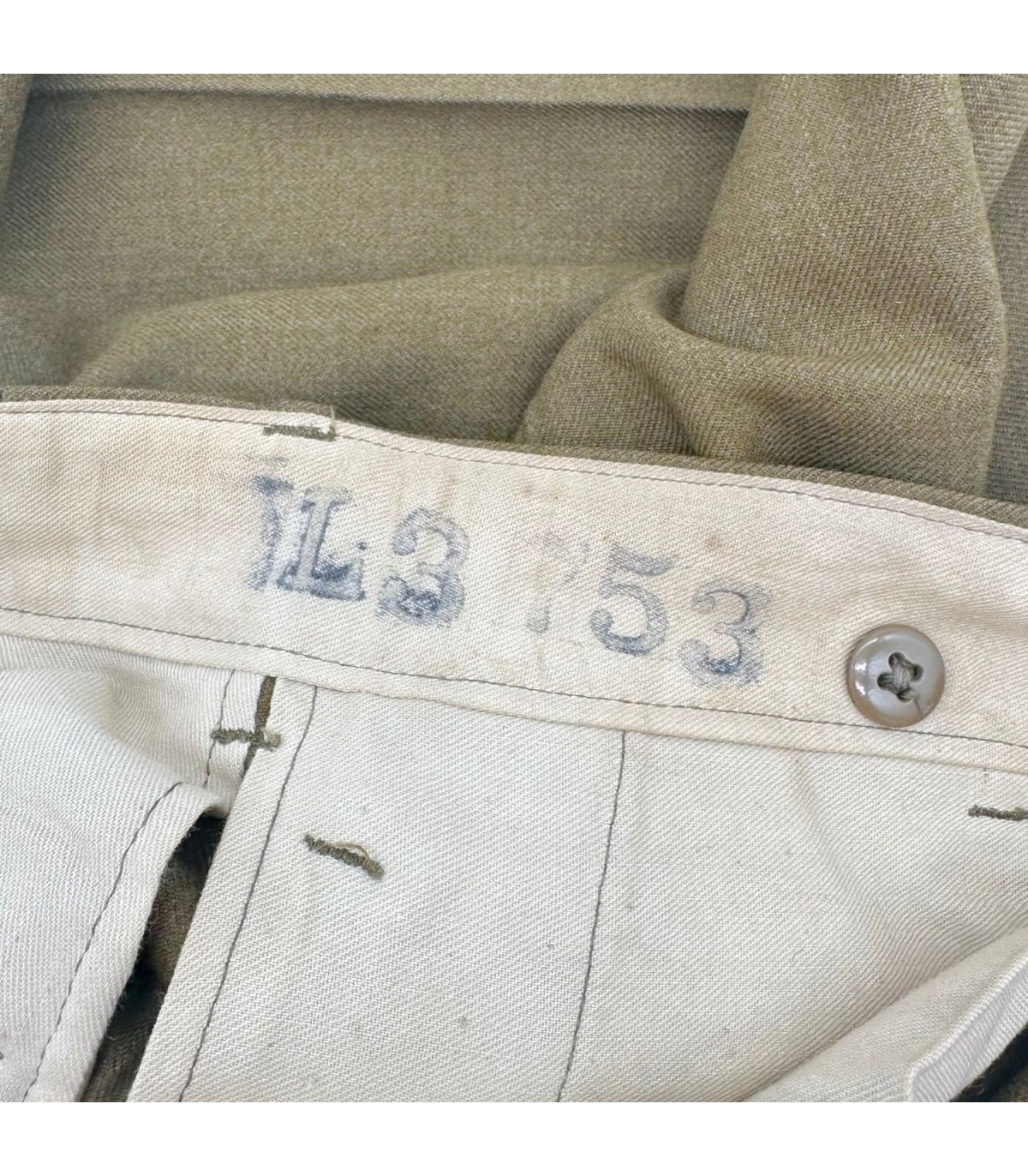 Chaque détail – de la teinte patinée naturellement par le temps aux marquages d’époque encore lisibles à l’intérieur – raconte une histoire silencieuse. Ce pantalon est une pièce d'origine, non modifiée, idéale pour les reconstituteurs, les musées ou les collectionneurs passionnés d’histoire militaire.