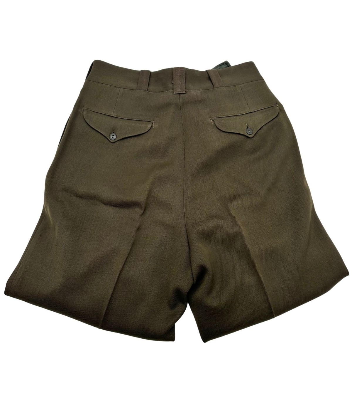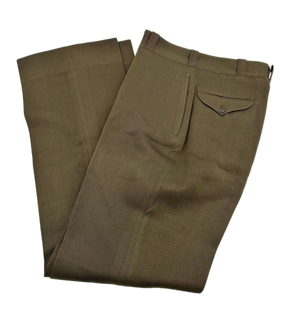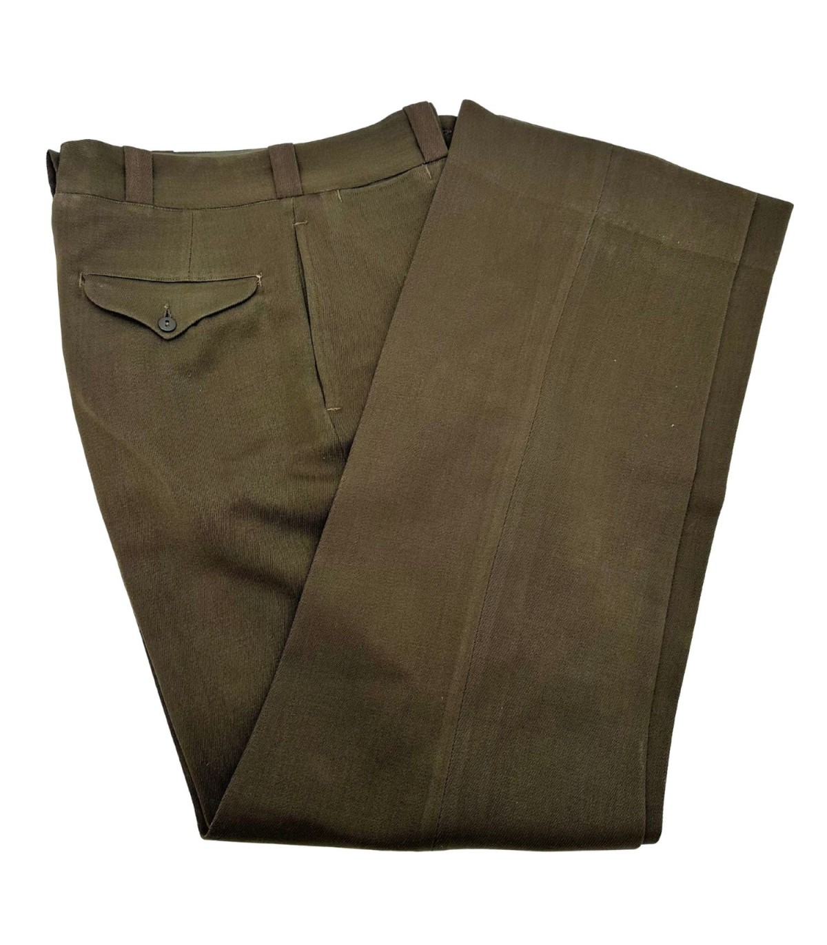 Pantalon pour officier de l'armée américaine d'origine deuxième guerre. Il est de couleur "chocolat" OD51 avec ses boutons présent. Taille approximative 31x32.