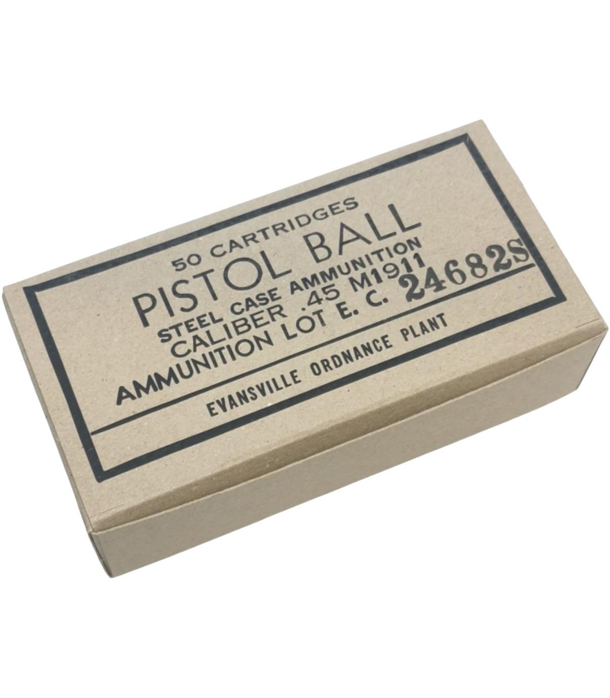 Modèle 50 Cartridges, Pistol Ball, Caliber .45 M1911, marquages Evansville conformes à l’original.