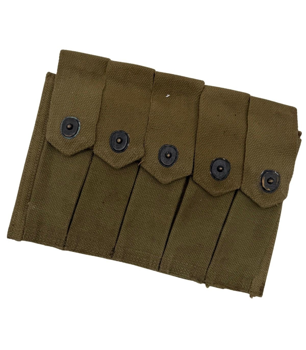 Ce porte-chargeur réglementaire, communément appelé « 5-cell pouch », est spécifiquement conçu pour accueillir les chargeurs droits de 20 coups du pistolet-mitrailleur Thompson (M1928A1, M1 et M1A1). Porté au ceinturon, il permettait au tireur de disposer de 100 cartouches de .45 ACP immédiatement accessibles, un atout déterminant lors des combats rapprochés.