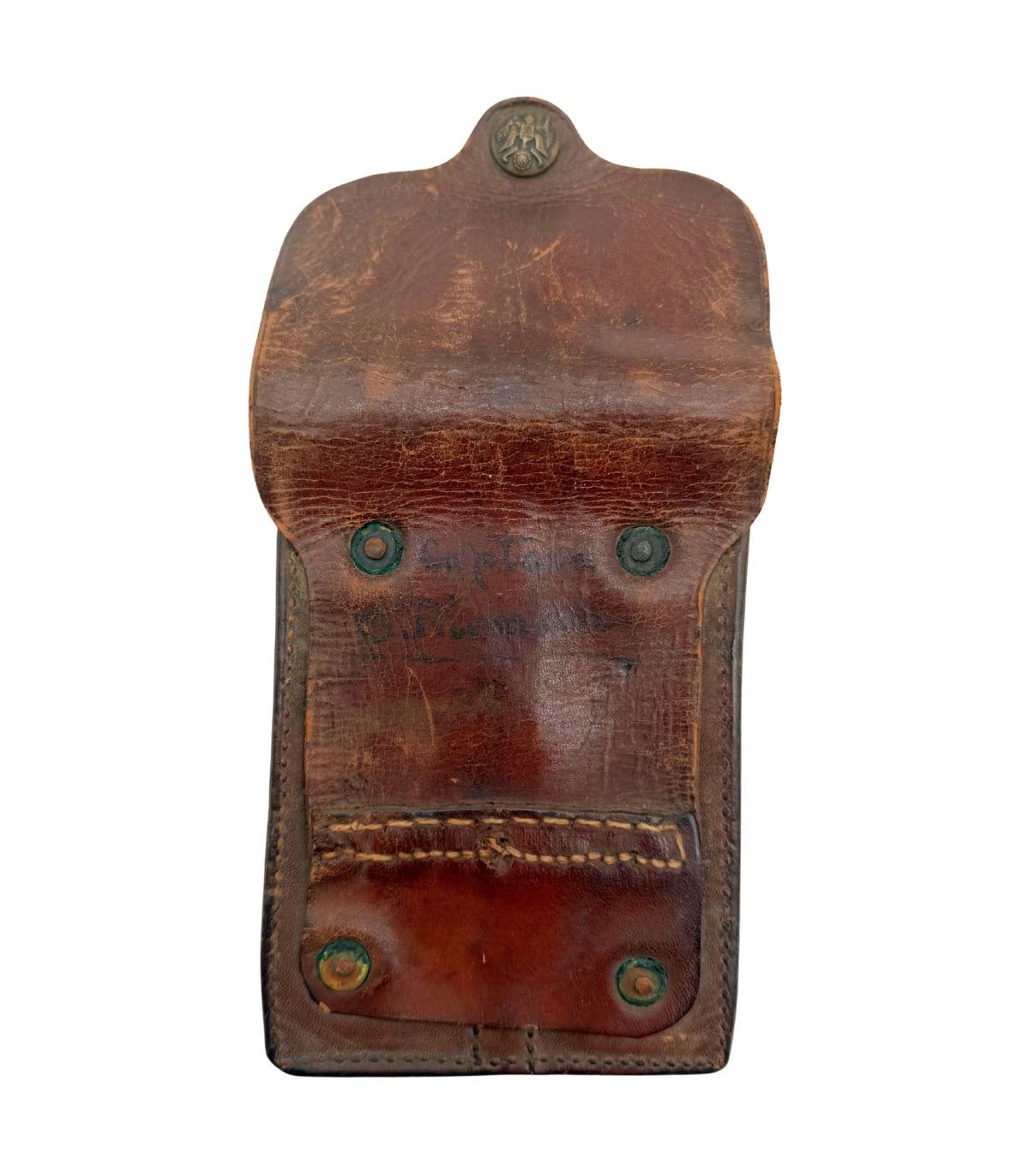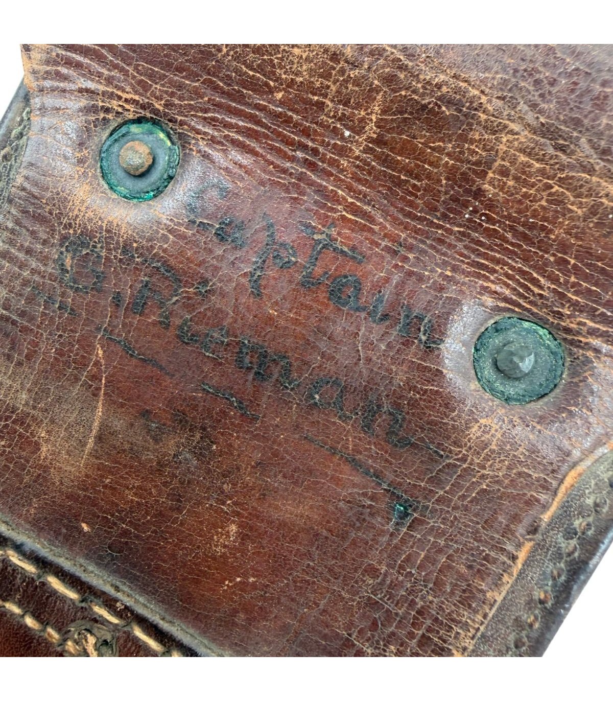 Ce qui propulse cet objet au rang de pièce de musée est son identification. Il est nominatif au Capitaine G. RIEMAN. La présence du grade et du nom suggère un officier de carrière ayant servi durant la période de la "Pancho Villa Expedition" ou lors de l'entrée en guerre des États-Unis en 1917. Un tel marquage permet d'envisager des recherches approfondies dans les registres militaires officiels pour retracer la carrière de cet officier. C'est un objet qui possède une identité propre et une âme historique indéniable.
