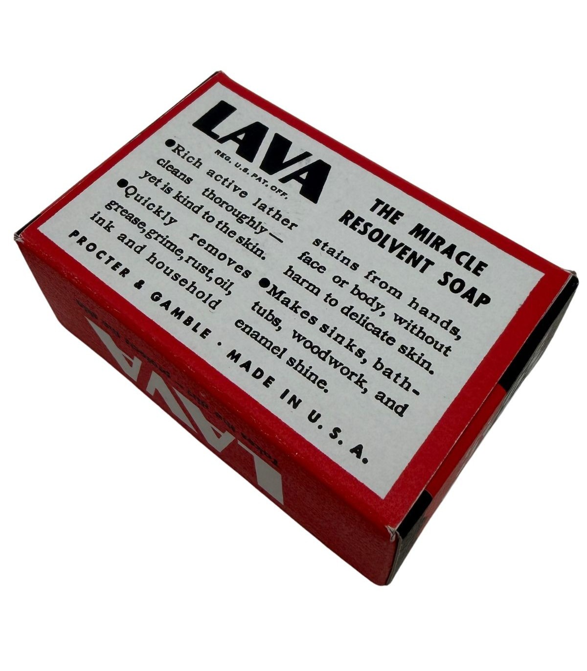 Marquages : On y retrouve toutes les inscriptions d'époque, notamment le slogan "The Miracle Resolvent Soap" qui a fait la renommée de la marque.
