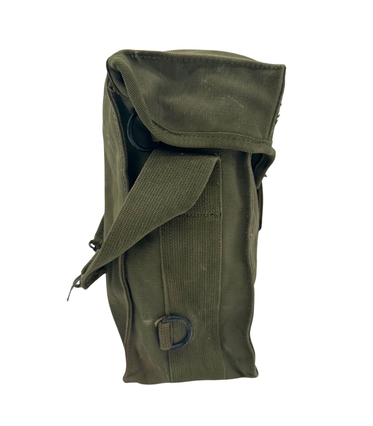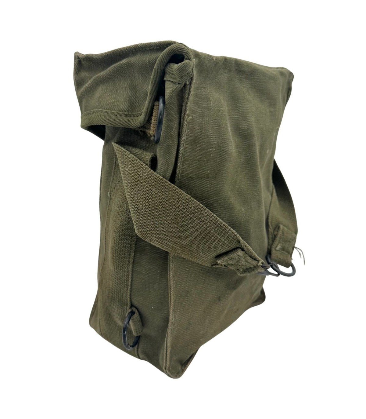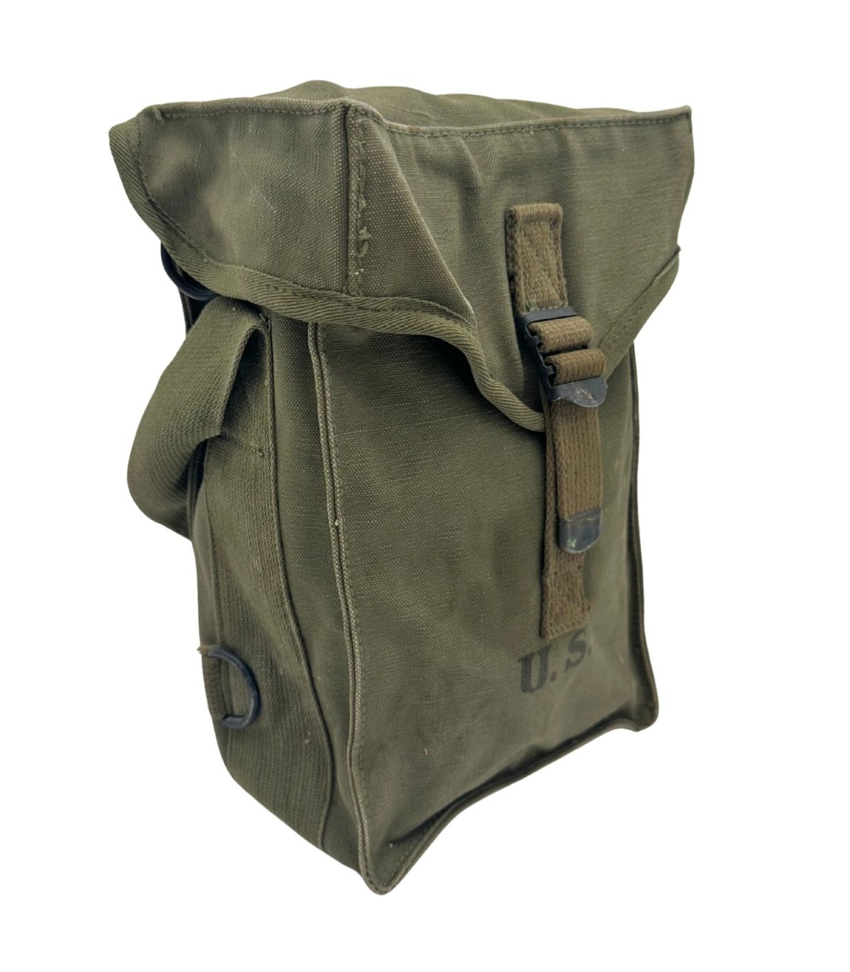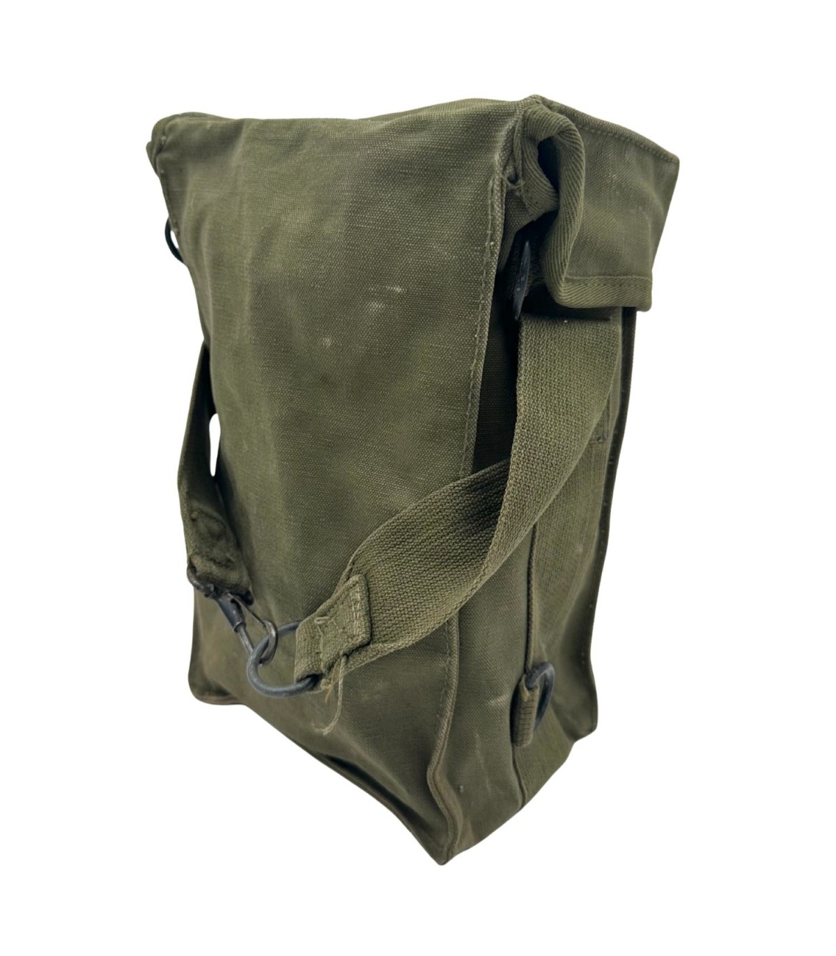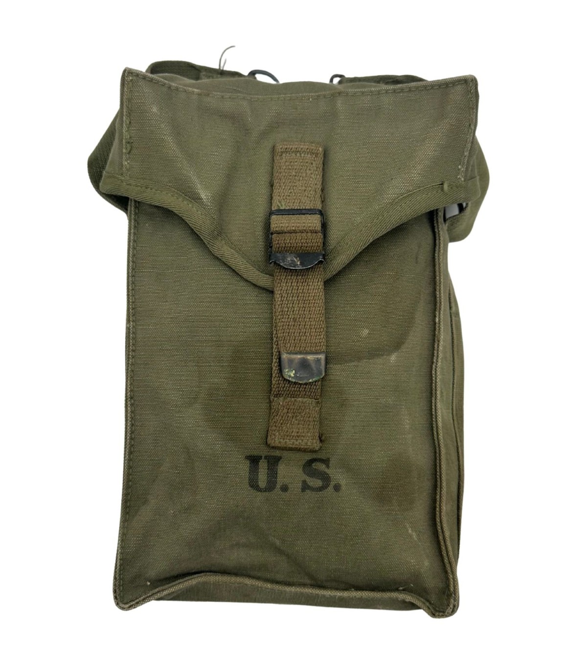 Description : La Musette GP est un sac en forte toile d’origine Deuxième Guerre, daté de 1945. Il était destiné au transport des munitions et des grenades par les soldats de l'us army. Généralement porté en bandoulière, il pouvait également être sanglé sur le dos. Cet exemplaire est en excellent état général.