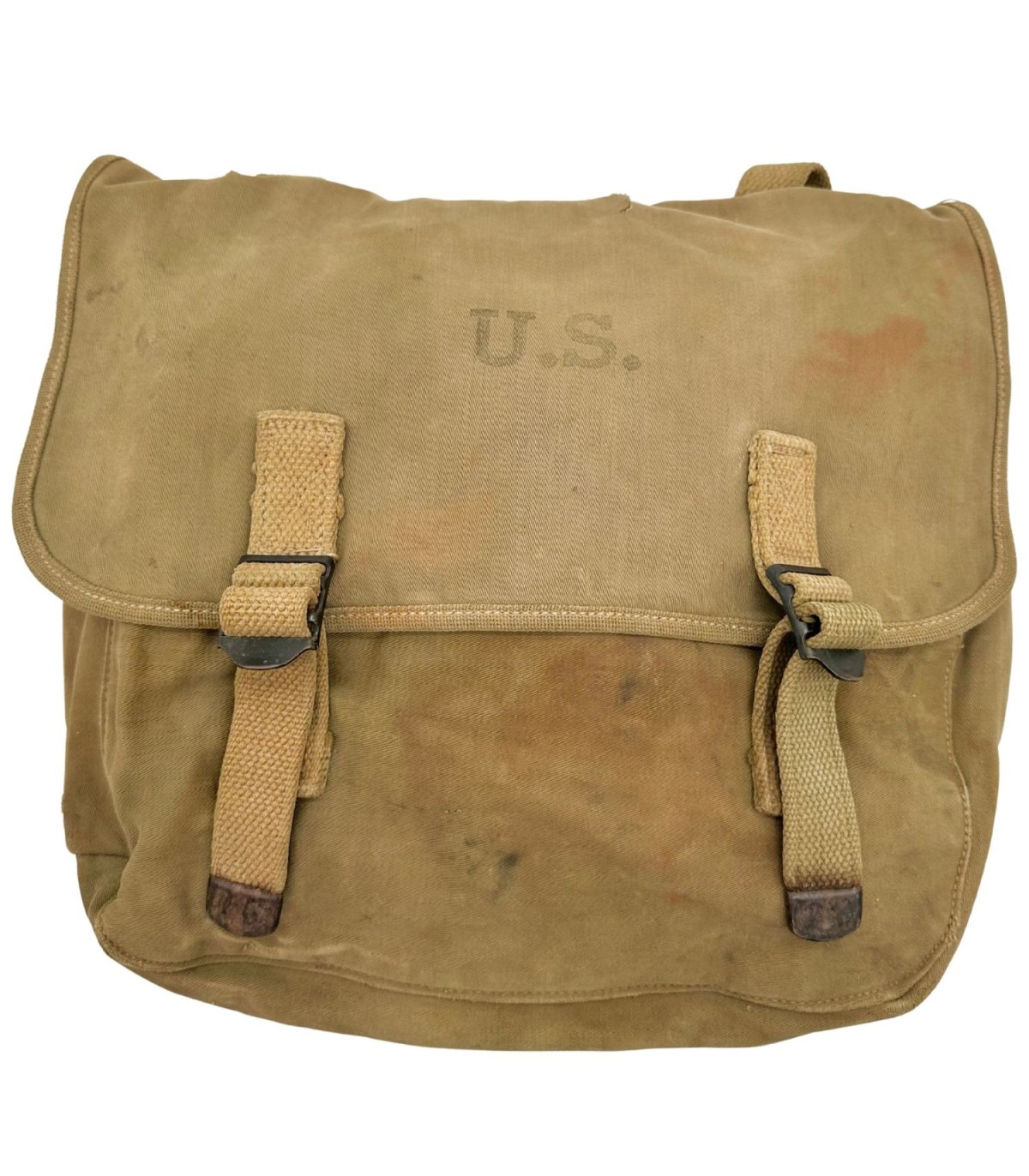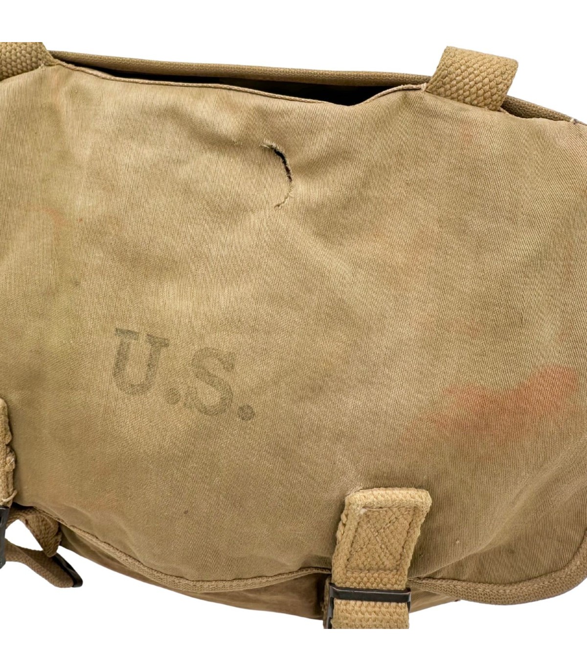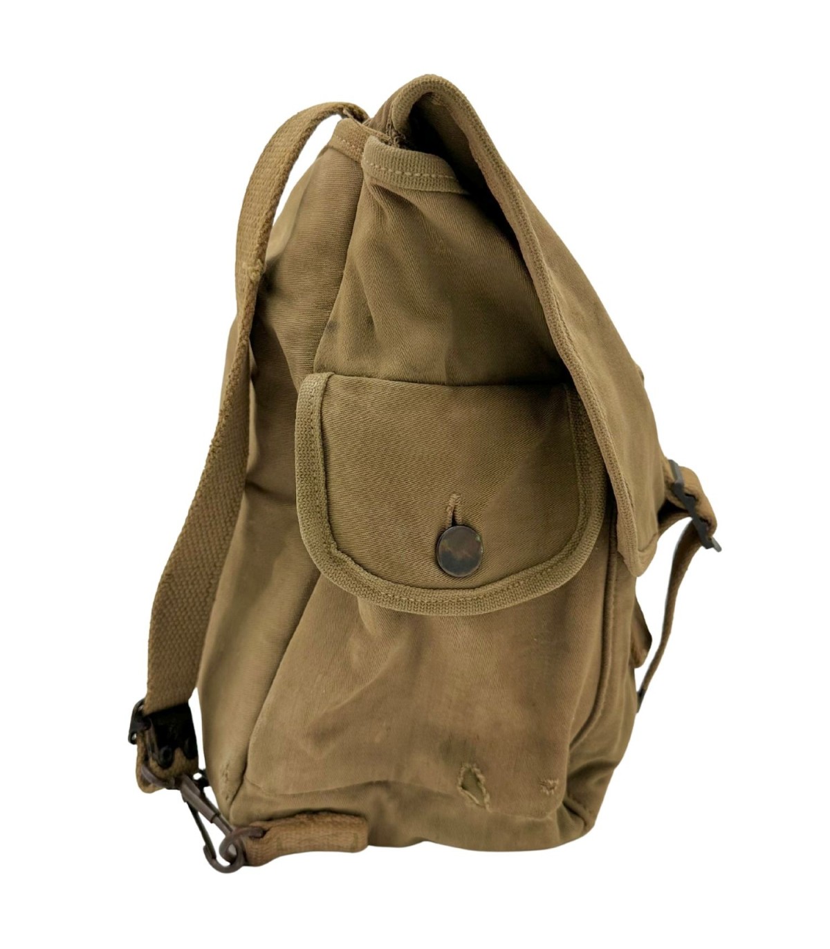 Appréciée pour sa praticité, elle était souvent portée en bandoulière ou fixée au ceinturon, contenant effets personnels, munitions légères, rations et cartes. Ce modèle en OD3 a été progressivement remplacé par le modèle en OD7 (plus foncé) vers la fin du conflit, ce qui en fait aujourd’hui un objet de collection particulièrement prisé par les passionnés de la période 39-45.