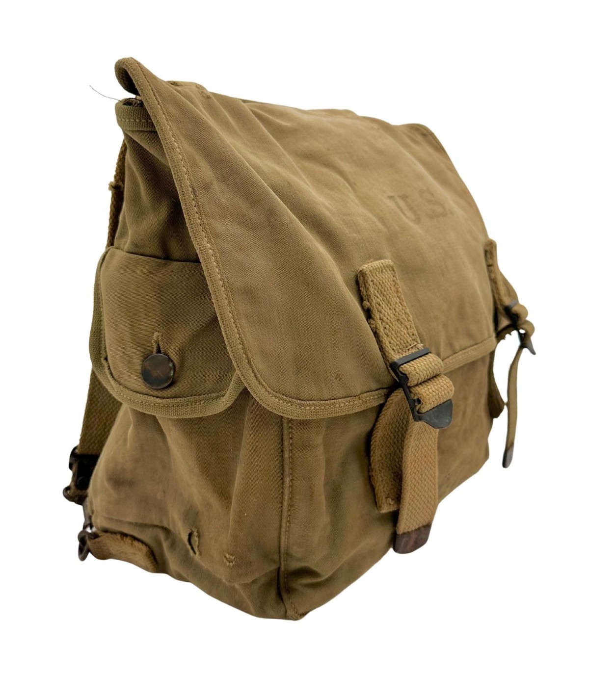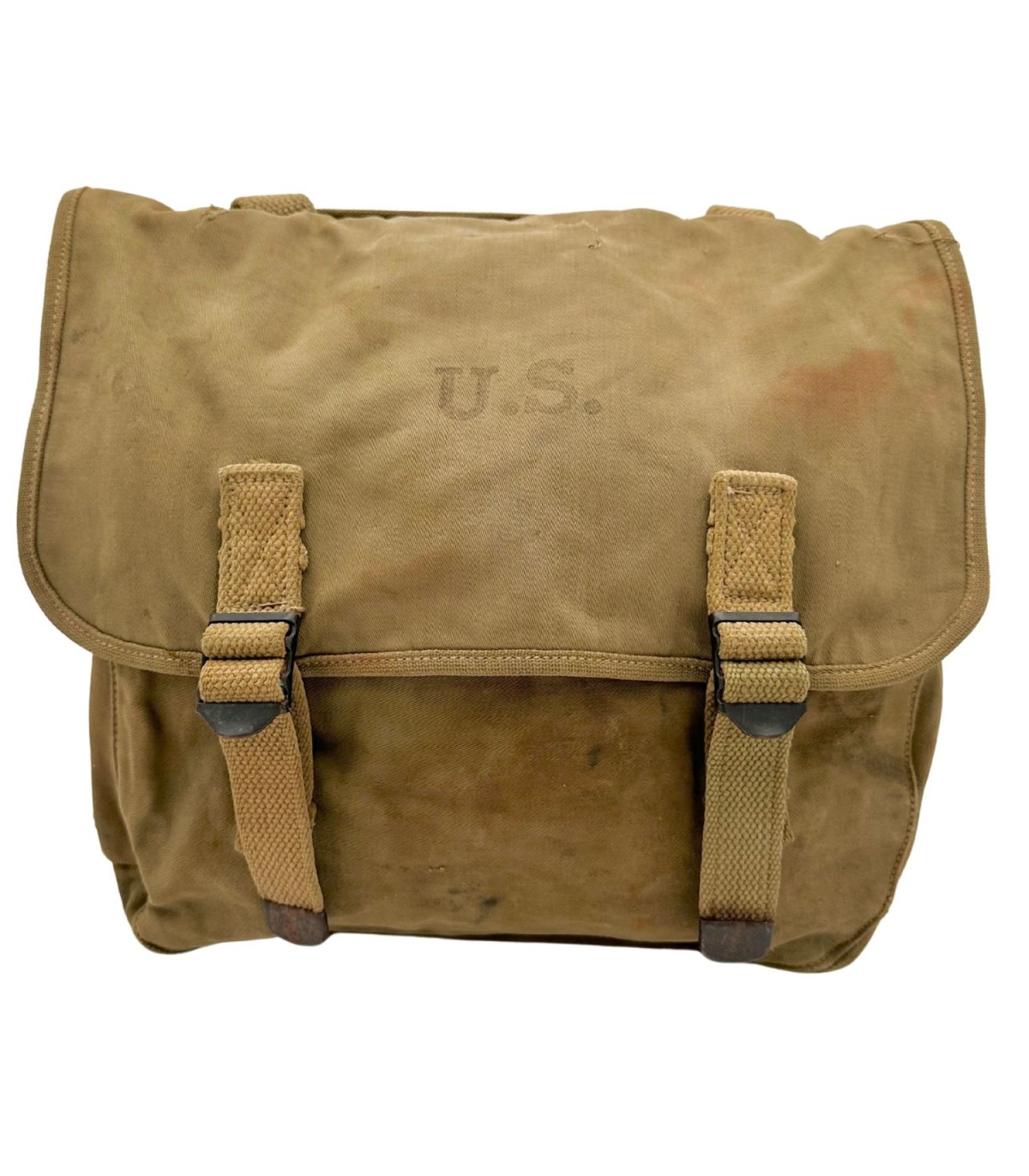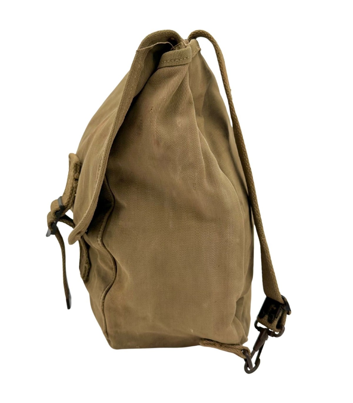 Appréciée pour sa praticité, elle était souvent portée en bandoulière ou fixée au ceinturon, contenant effets personnels, munitions légères, rations et cartes. Ce modèle en OD3 a été progressivement remplacé par le modèle en OD7 (plus foncé) vers la fin du conflit, ce qui en fait aujourd’hui un objet de collection particulièrement prisé par les passionnés de la période 39-45.