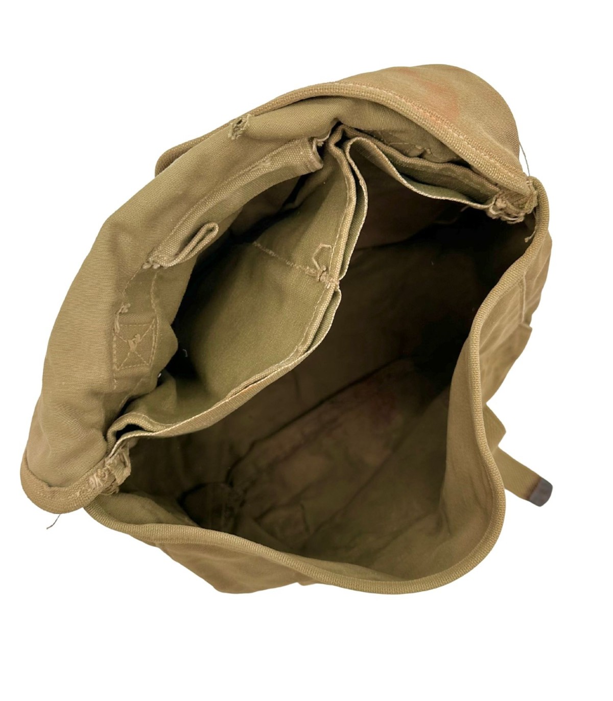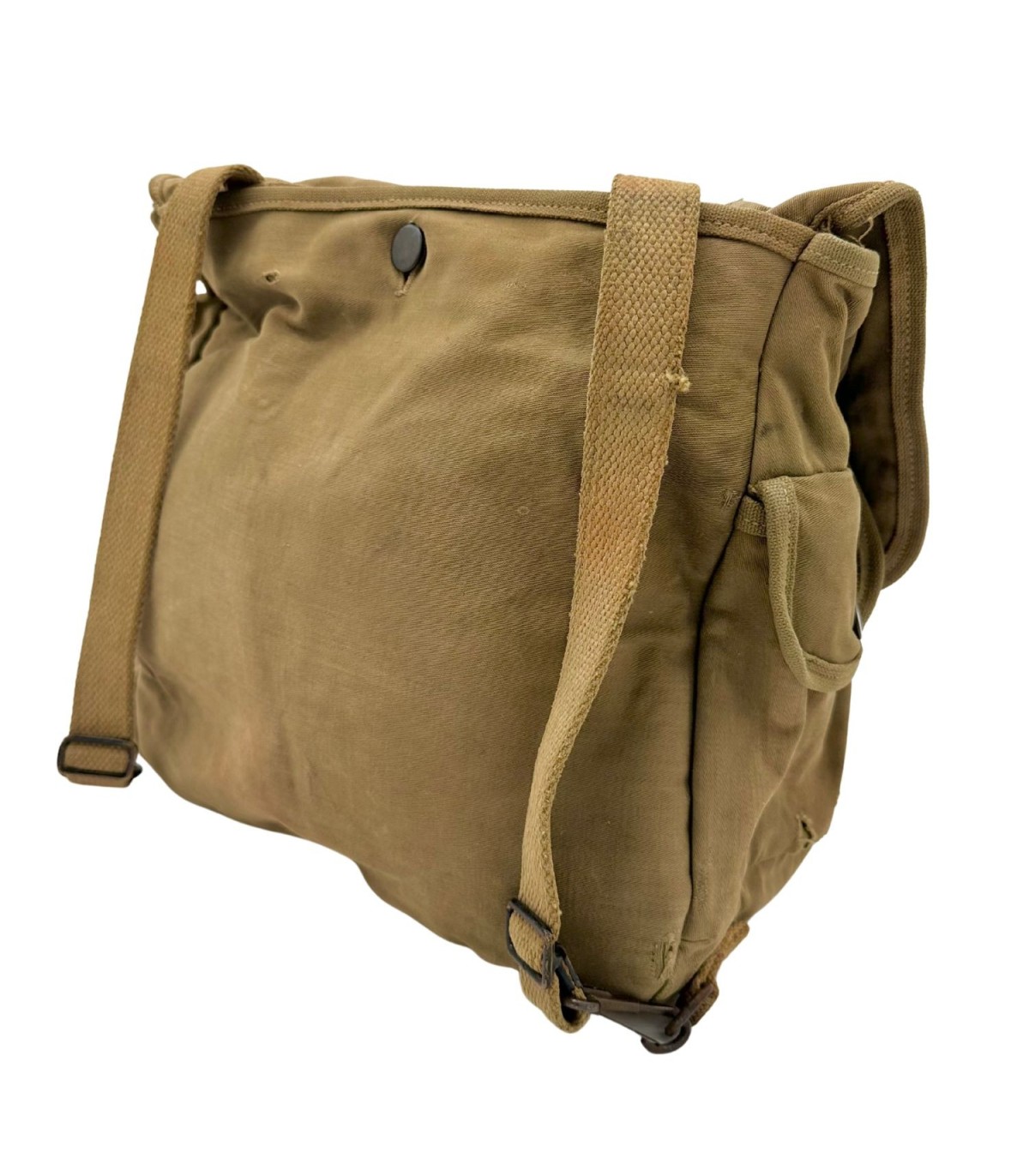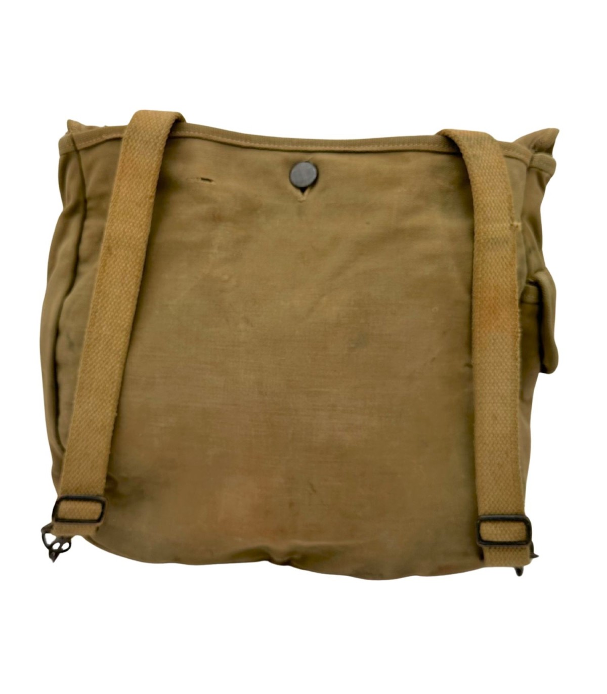 Ce modèle iconique a été initialement conçu pour accompagner les officiers, les parachutistes et le personnel de terrain. Compacte mais robuste, elle se distingue par sa toile en coton résistante, sa teinte OD3 caractéristique des premières années du conflit, ainsi que ses sangles de transport ajustables.