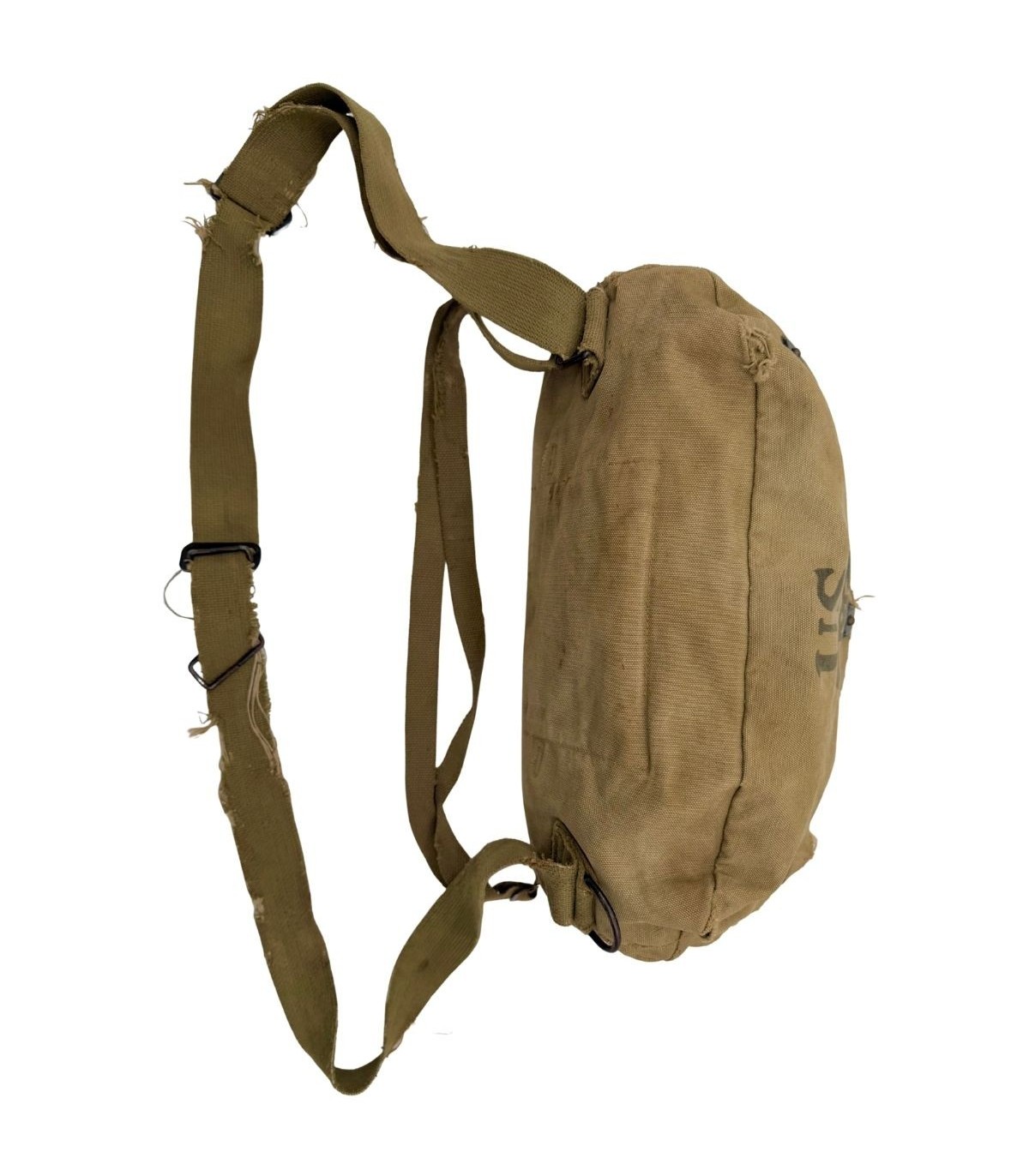 Initialement conçue pour transporter le masque à gaz léger M3, la musette M6 est rapidement devenue un sac fourre-tout indispensable pour le GI sur le terrain. Trop encombrés par leur équipement réglementaire, de nombreux soldats – notamment les parachutistes et les Rangers – l’utilisaient pour transporter des munitions supplémentaires, des rations ou des effets personnels.