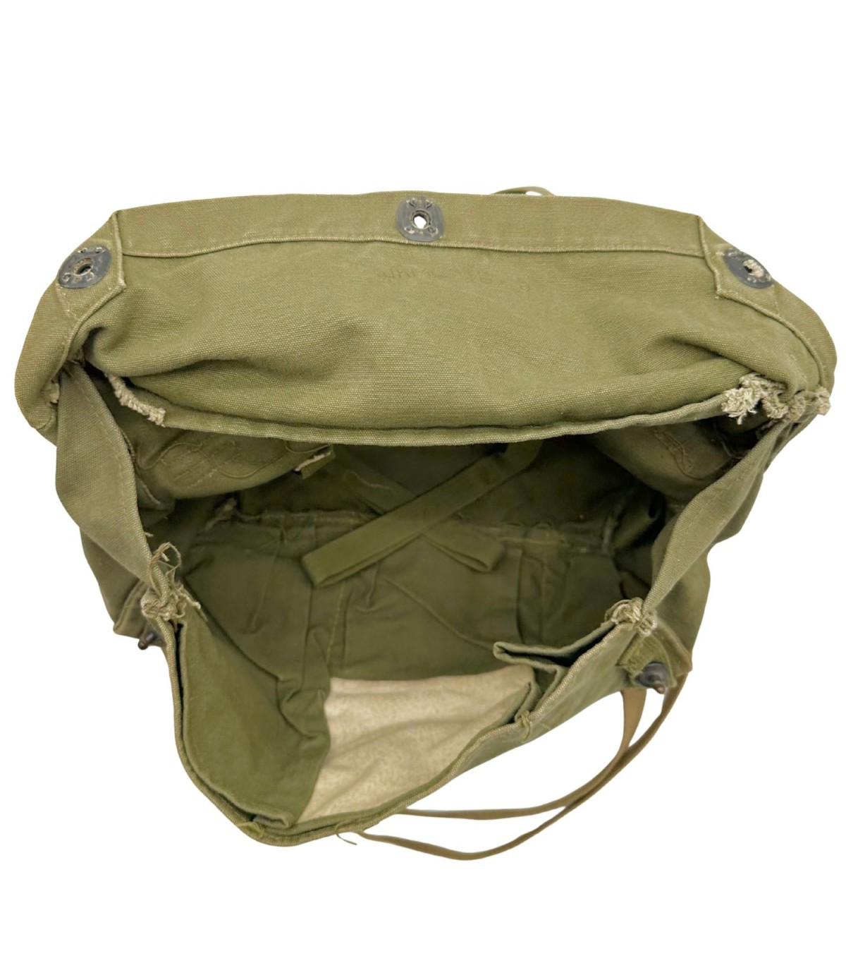 Rare havresac FRY PROD. Inc. daté de 1942 complet avec sa pochette à gamelle et son pack carrier. Cet exemplaire confectionné en forte toile OD#3 est en excellent état avec sa pochette à gamelle de la même couleur....