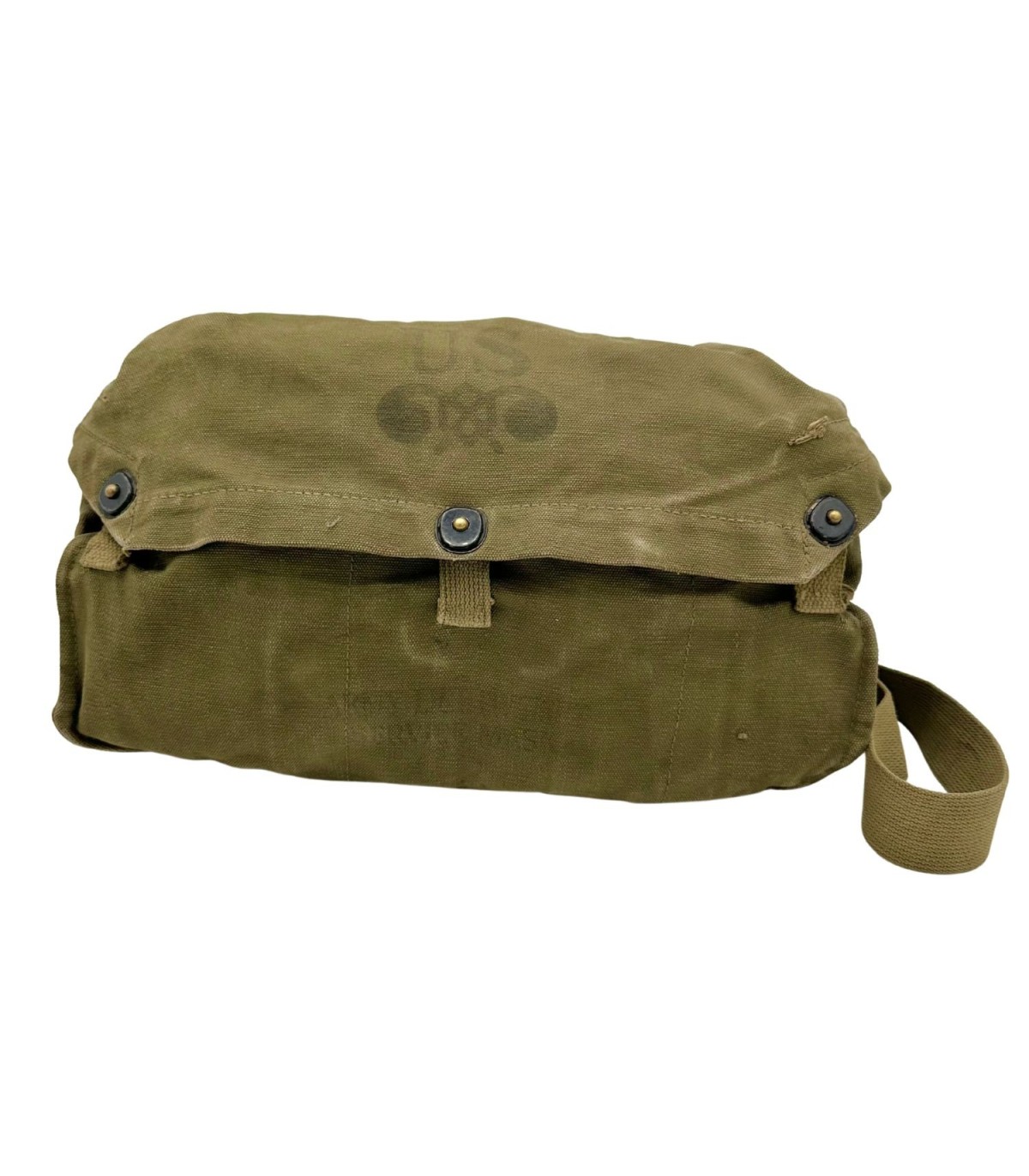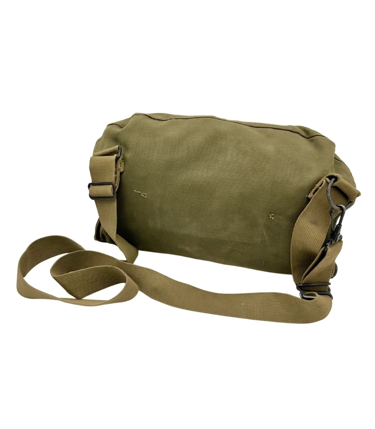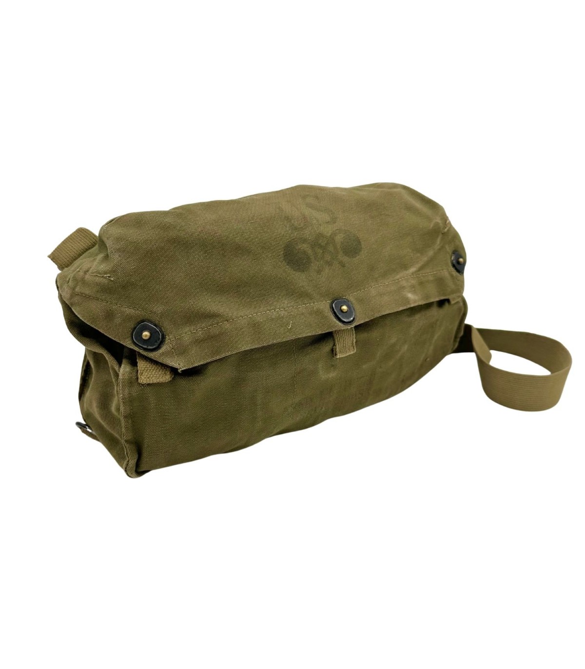 La musette M6 a été introduite pendant la Seconde Guerre Mondiale pour répondre aux besoins des soldats américains en termes de protection contre les attaques chimiques. Elle était utilisée pour transporter et protéger les masques à gaz, essentiels pour la survie en cas d'attaque. La conception robuste et pratique de cette musette en a fait un équipement indispensable pour les soldats en mission. Chaque musette raconte une histoire unique, ayant probablement accompagné un soldat à travers les rigueurs des combats en Europe ou dans le Pacifique.