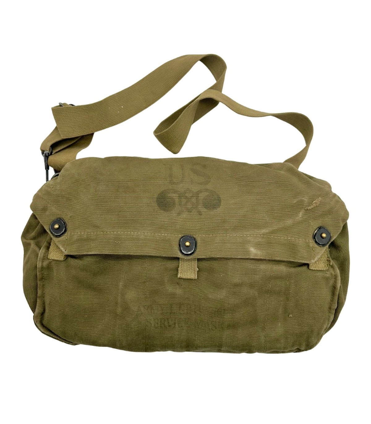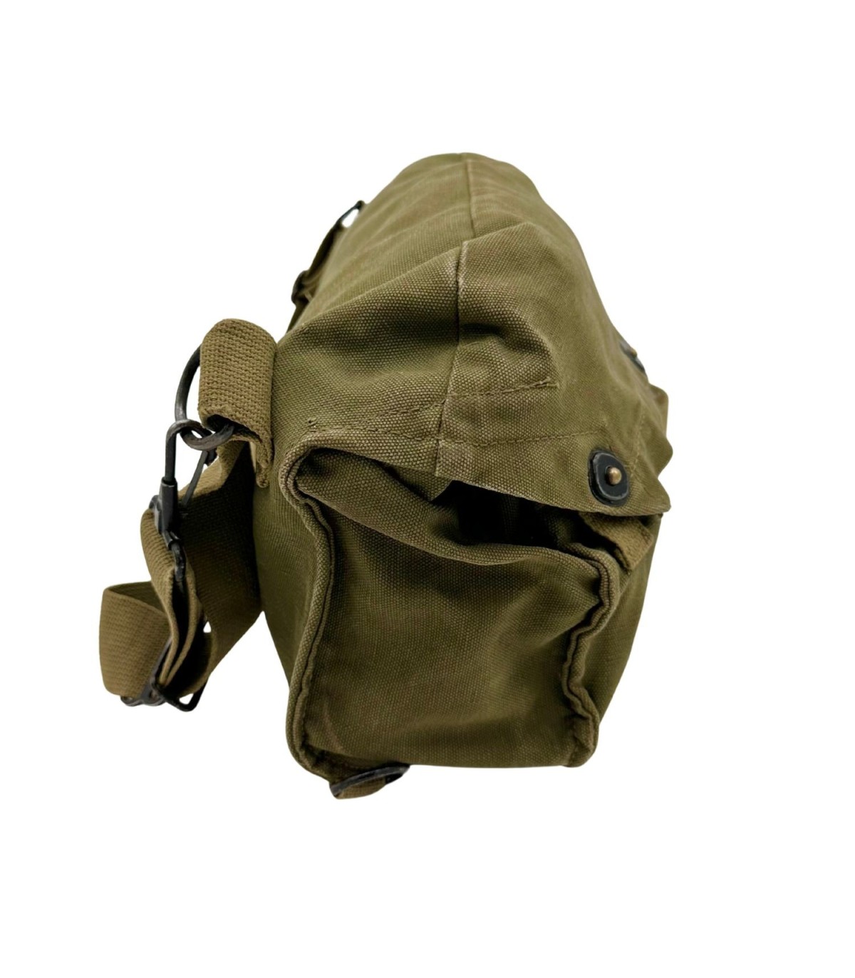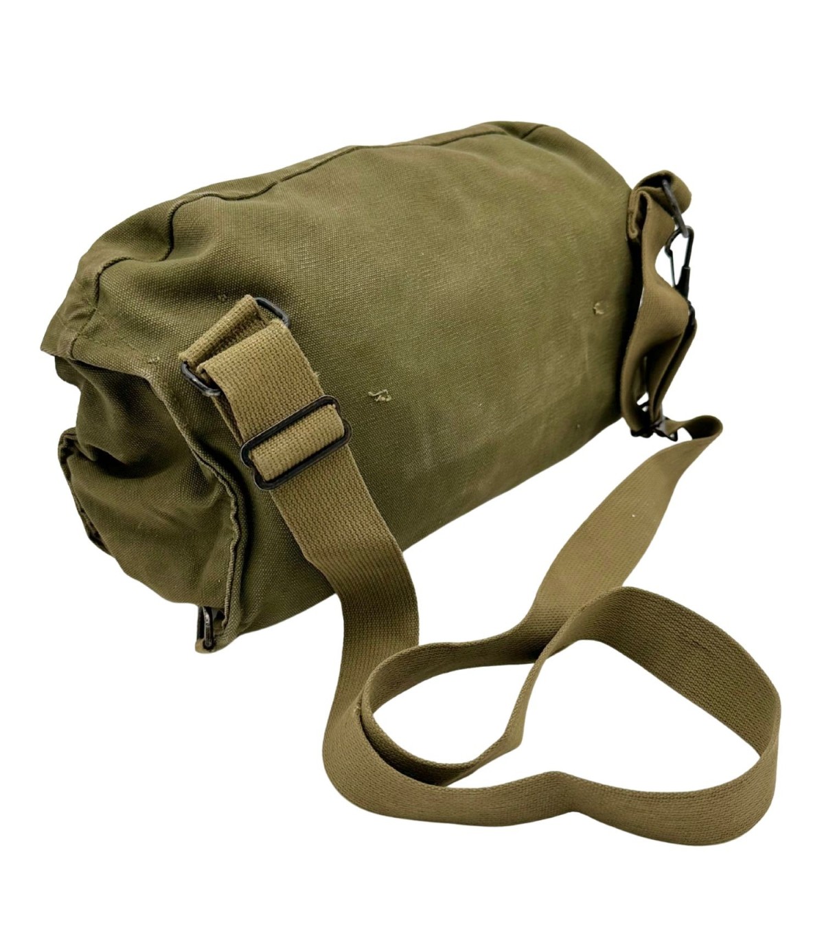 La musette M6 a été introduite pendant la Seconde Guerre Mondiale pour répondre aux besoins des soldats américains en termes de protection contre les attaques chimiques. Elle était utilisée pour transporter et protéger les masques à gaz, essentiels pour la survie en cas d'attaque. La conception robuste et pratique de cette musette en a fait un équipement indispensable pour les soldats en mission. Chaque musette raconte une histoire unique, ayant probablement accompagné un soldat à travers les rigueurs des combats en Europe ou dans le Pacifique.