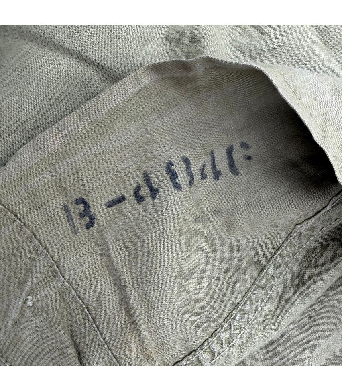 Laundry Number : Le code B-4846 est clairement lisible. Ce matricule simplifié (initiale du nom + 4 derniers chiffres du matricule) permettait au soldat de retrouver son linge après le passage à la blanchisserie de campagne.