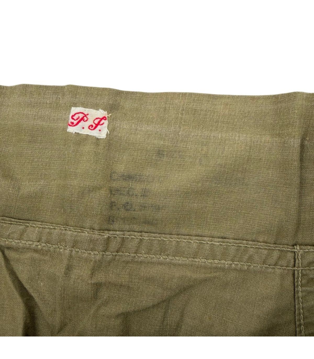 Initiales : On retrouve également les initiales "P.P." apposées par le soldat, une pratique courante pour éviter les vols ou les pertes au sein de la chambrée.