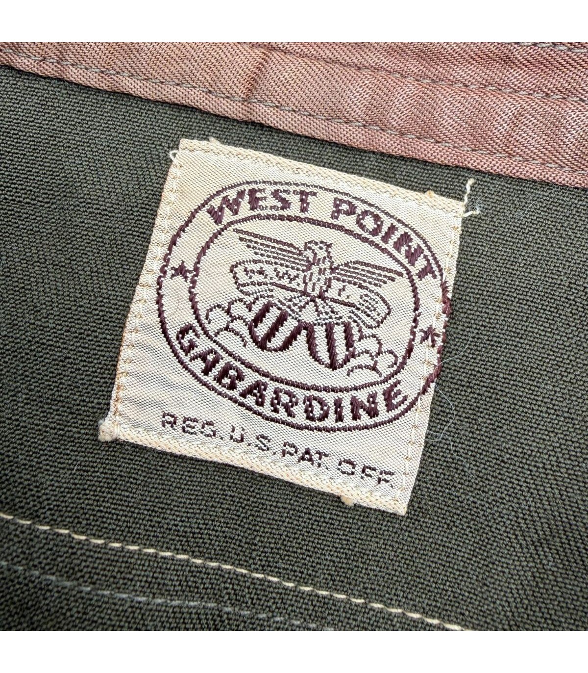 Étiquette de prestige : Présence de l'étiquette tissée d'origine "WEST POINT GABARDINE REG. U.S. PAT. OFF", garantissant une fabrication conforme aux standards des académies militaires.