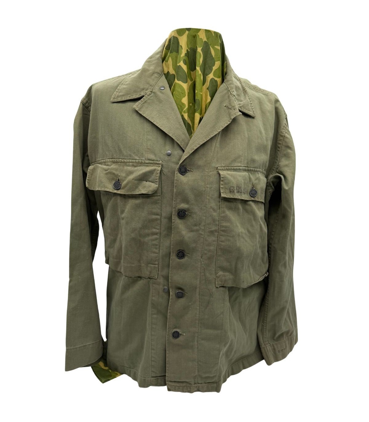 Modèle : Veste de combat et de travail M-1943, reconnaissable à ses deux grandes poches de poitrine à soufflet.