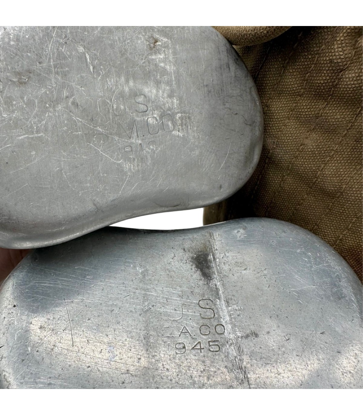Ensemble Complet Gourde US Army WWII – Housse Atlantic Prod Corp 1942 – Bidon S.M Co 1942 – Quart E.A Co 1945