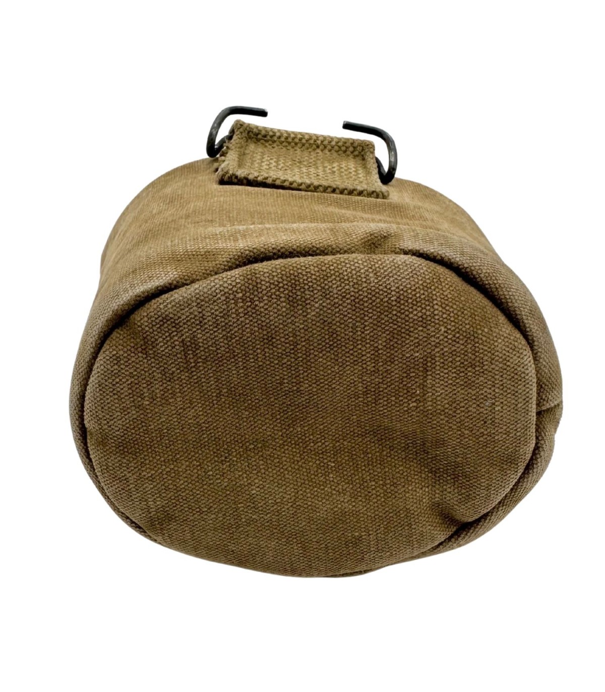 Housse : La housse en toile (Carrier), de couleur Olive Drab, a son marquage de fabricant et sa date illisible, ce qui est courant pour les pièces de campagne. Elle est cependant dans un état parfait, avec ses pressions fonctionnelles et son crochet M-1910 (pour la fixation au ceinturon) bien présent.