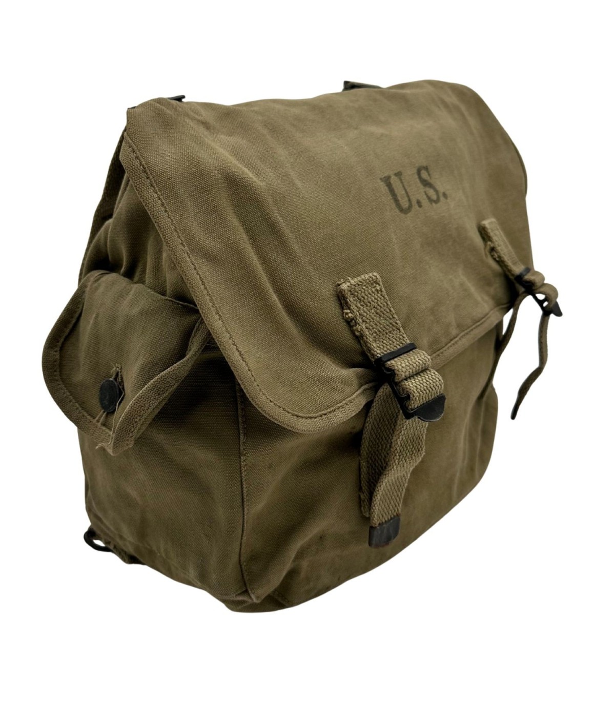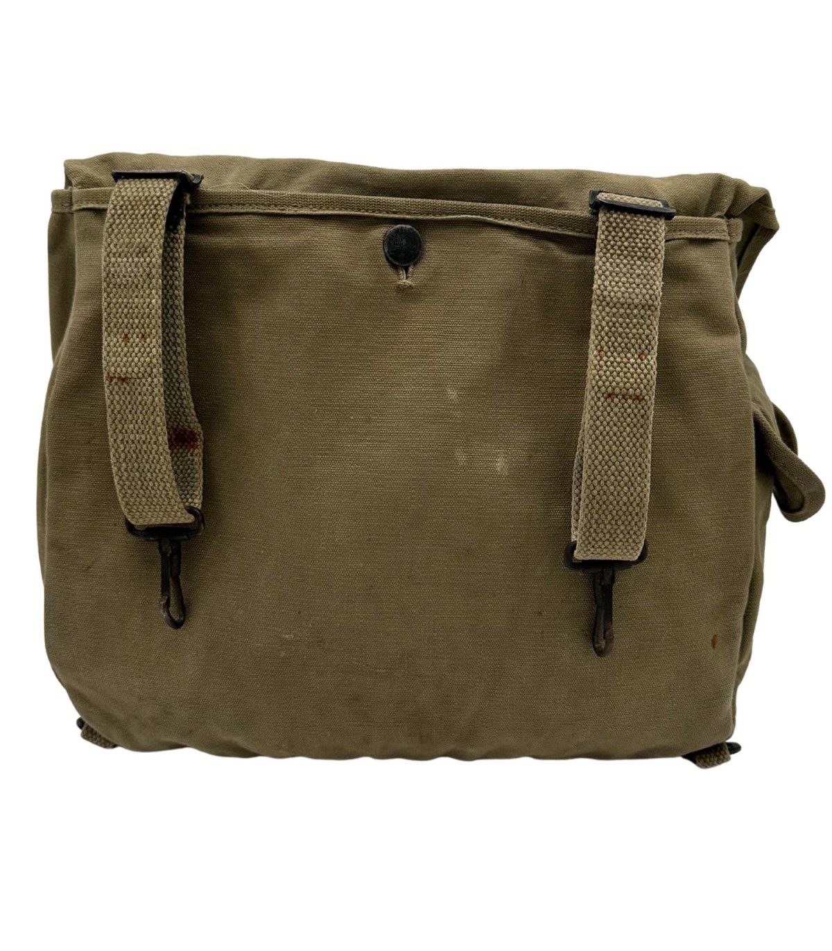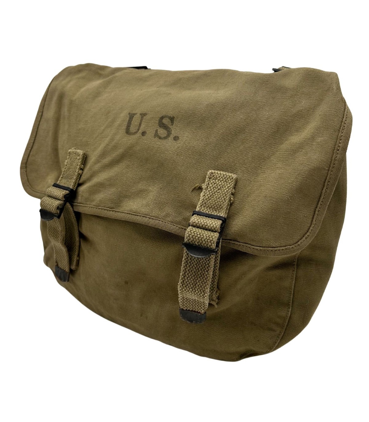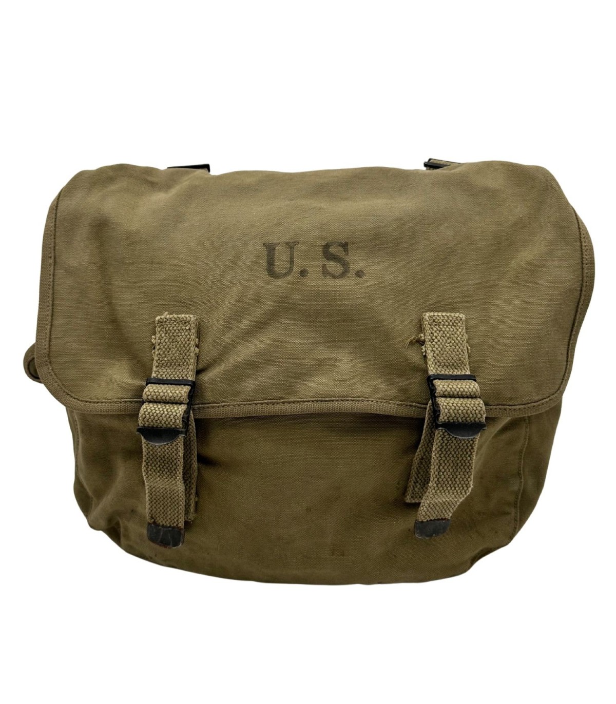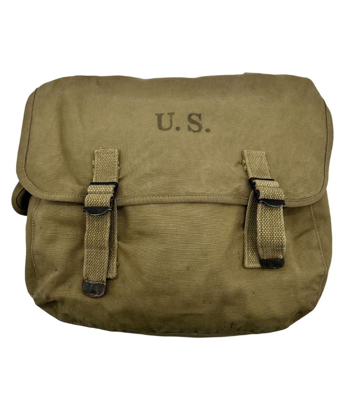 Datation : La musette est clairement datée de 1943. Cette année est capitale, car elle marque la période des grandes campagnes américaines (Afrique du Nord, Sicile, début de l'Italie), et la production massive avant le Débarquement de Normandie.
