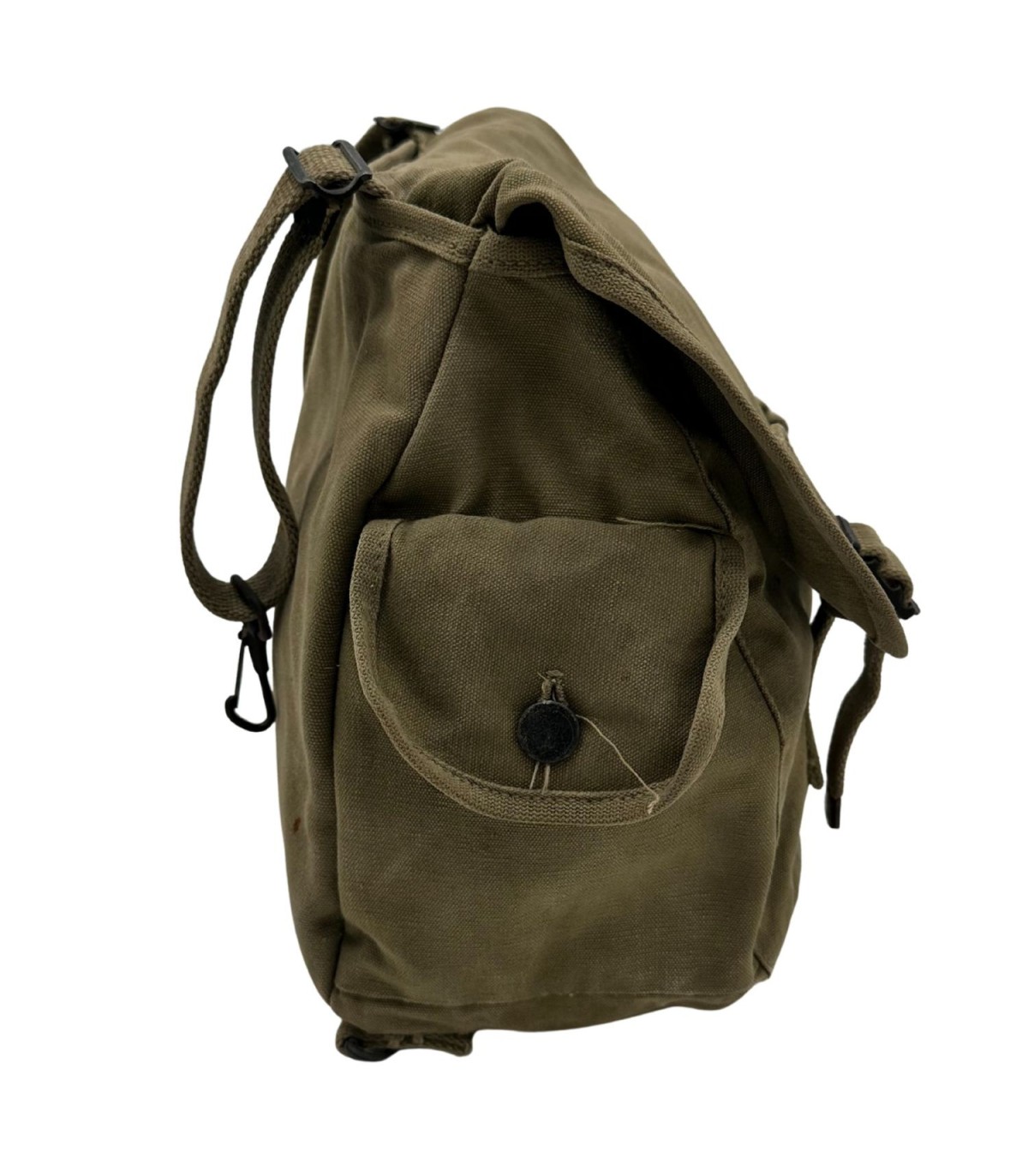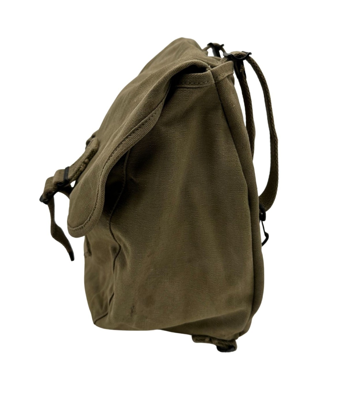 Nous vous proposons une pièce absolument essentielle du système de portage de l'US Army : la Musette M-1936 (Musette Bag). Ce sac polyvalent, en toile de coton (Canvas) Olive Drab, était utilisé par les officiers et les fantassins pour transporter des cartes, des rations, des munitions ou des effets personnels en campagne.