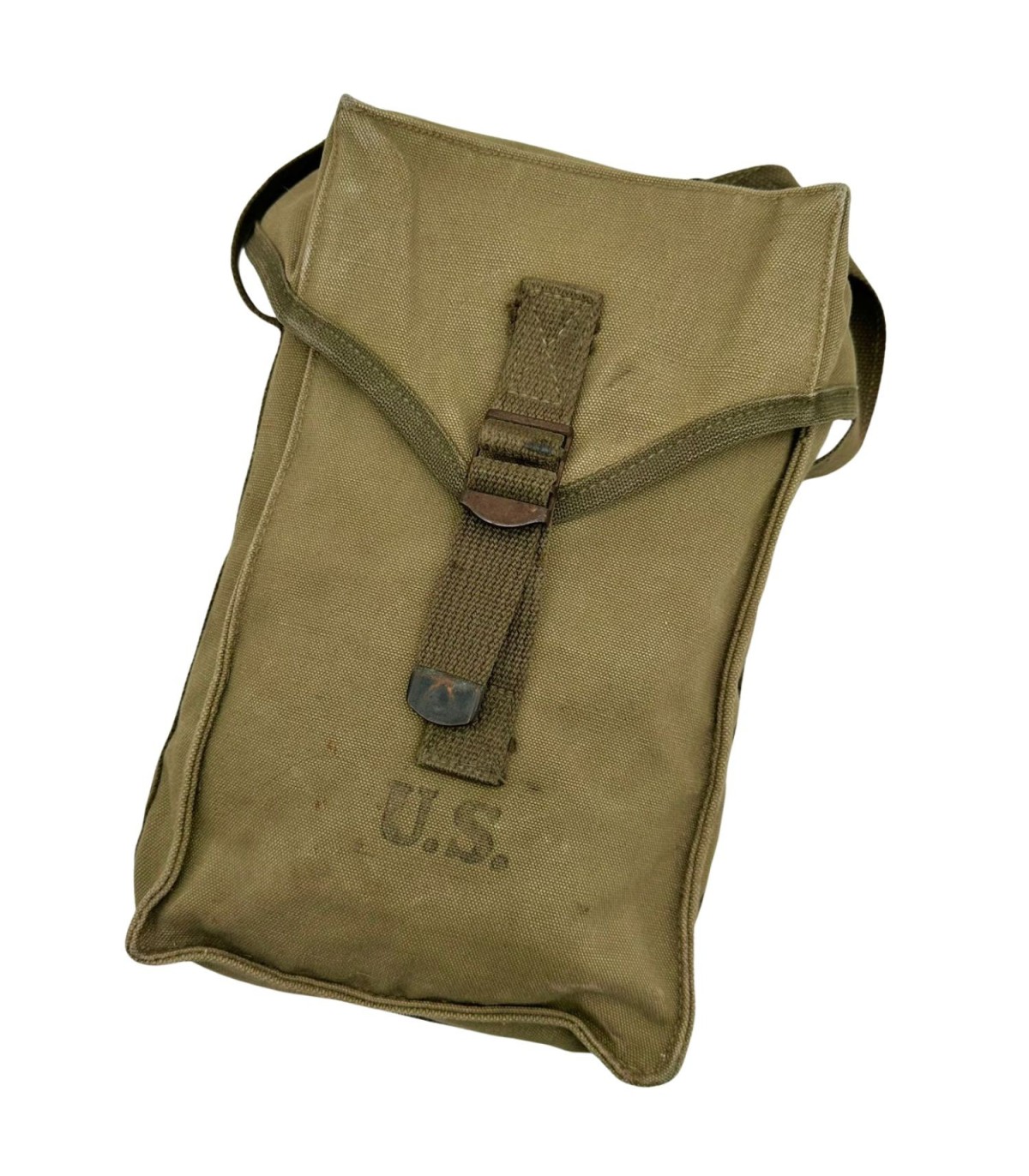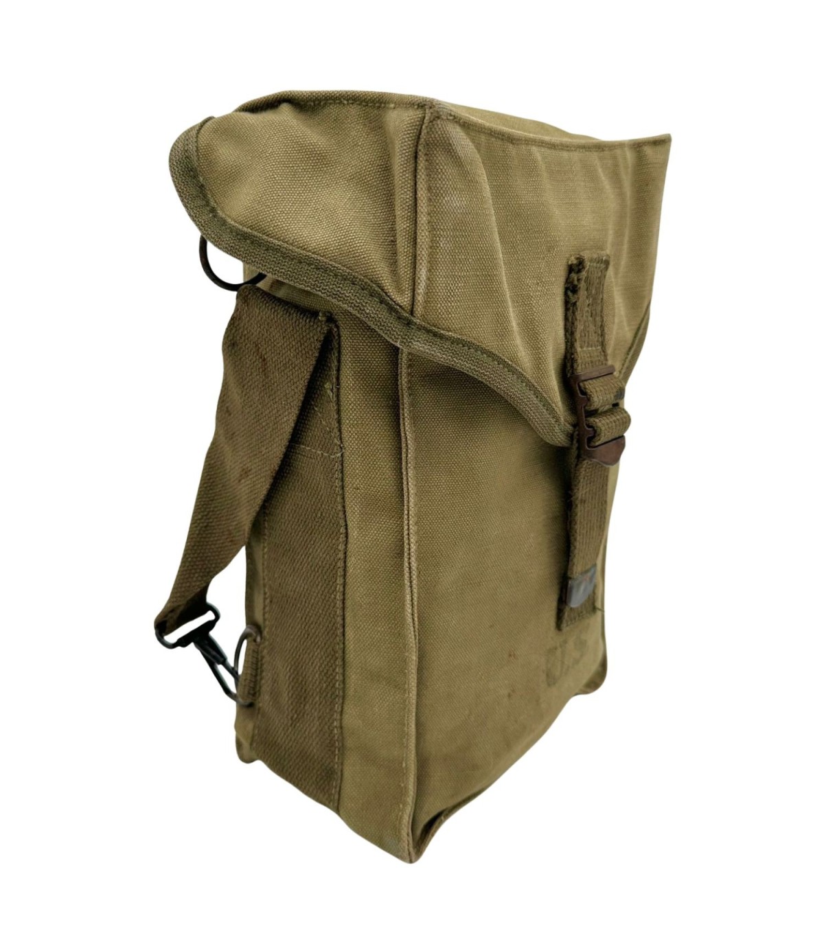 Nous vous proposons une pièce essentielle de l'équipement de l'US Army de la Seconde Guerre Mondiale : une Musette General Purpose (GP) ou Sac à Usage Général. Ce sac polyvalent en toile était utilisé pour transporter un large éventail d'équipements, incluant des rations, des munitions ou des accessoires individuels.