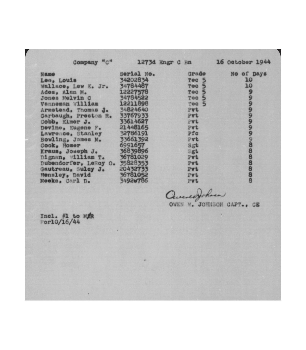 Année d'enrôlement : 1941 (Janvier).