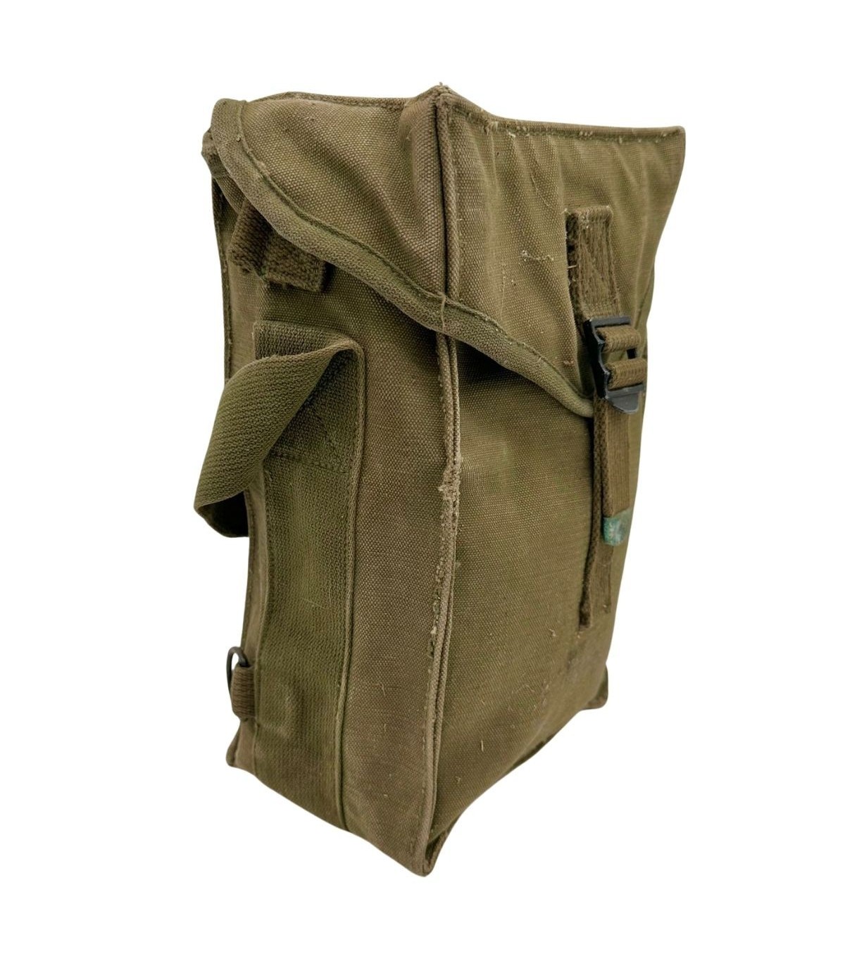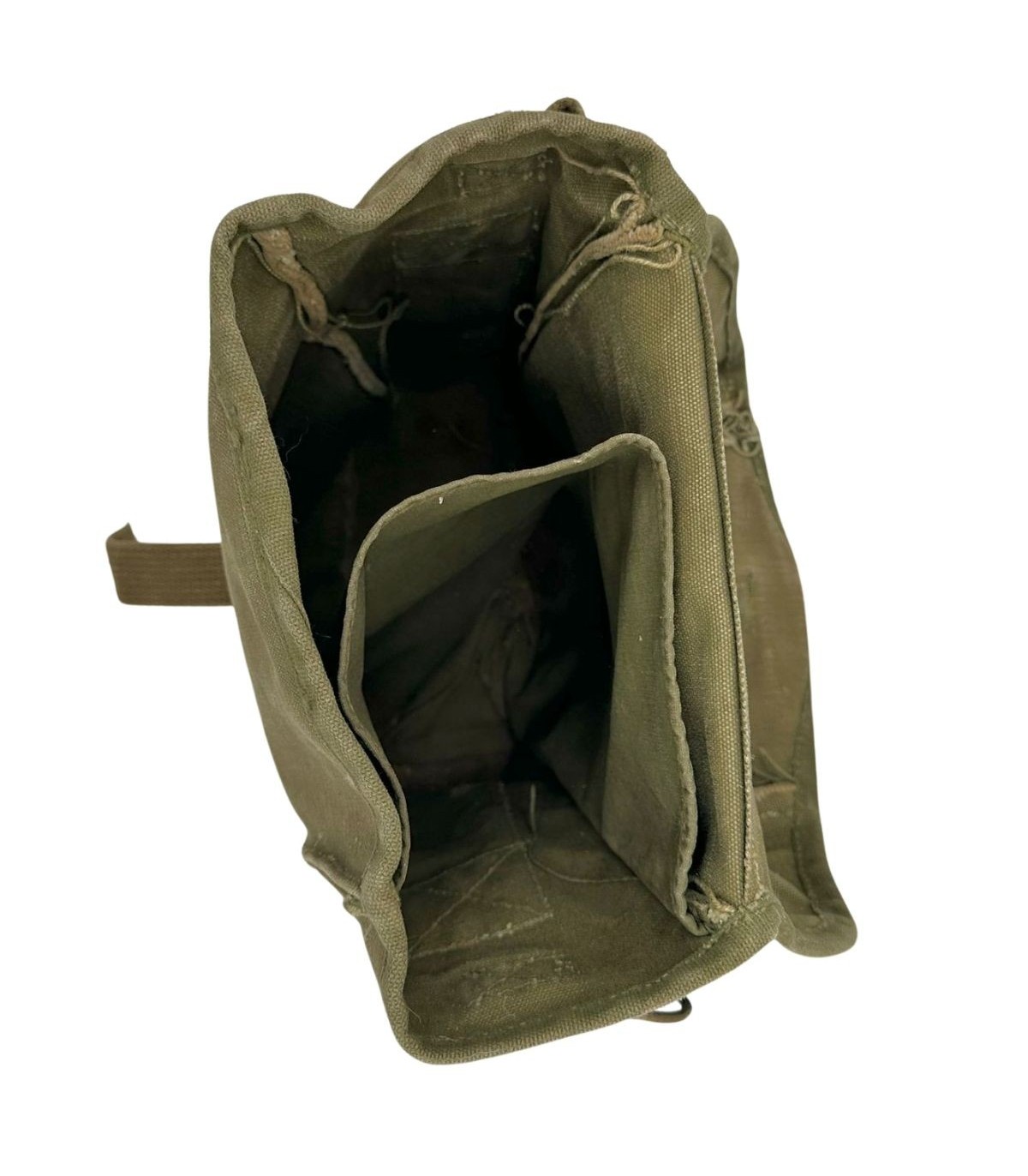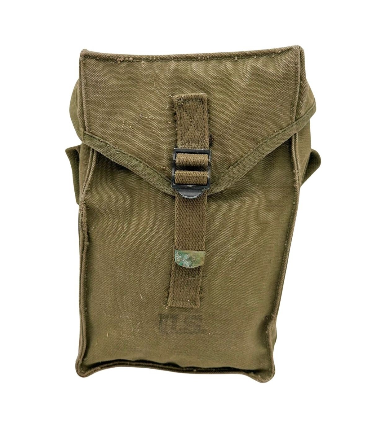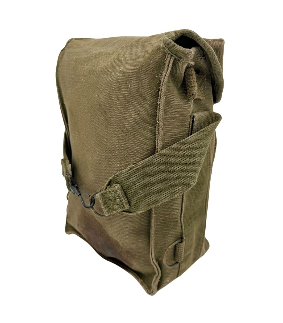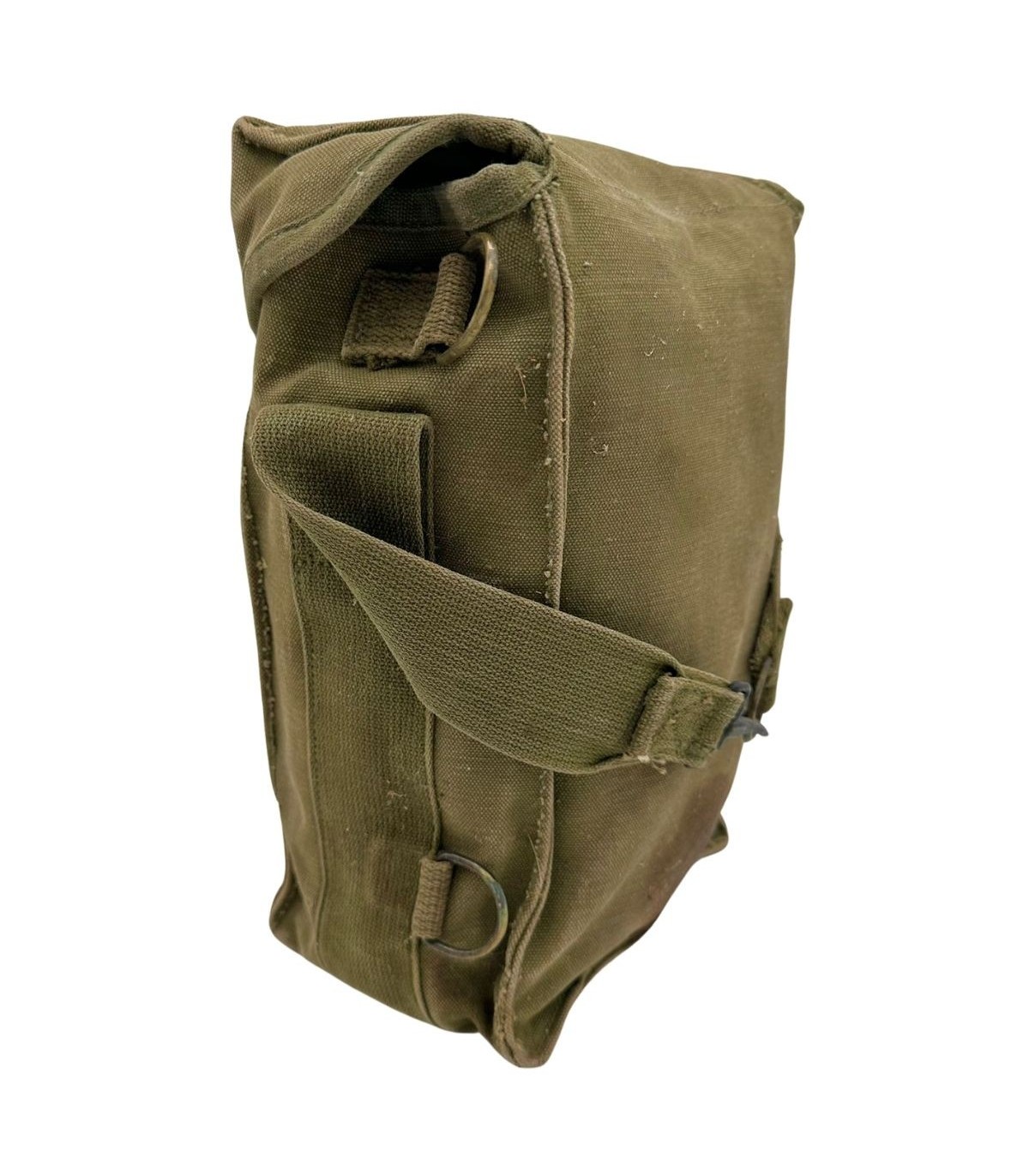 Nous vous proposons une pièce authentique et indispensable à tout équipement de terrain américain : la sacoche General Purpose (GP). Initialement conçue pour le transport de munitions (bandoulières de Garand, grenades, chargeurs de Thompson), elle est devenue célèbre pour son utilisation détournée par les Parachutistes et l'Infanterie comme musette de complément pour les effets personnels ou les rations.