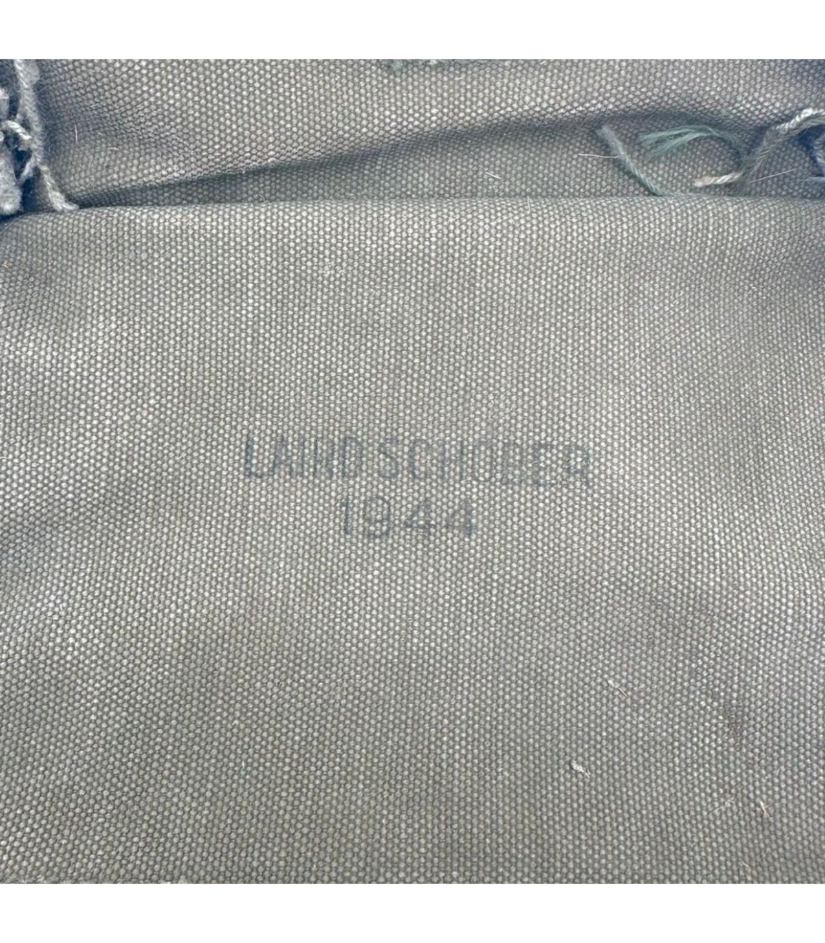 Cet exemplaire a été produit par Laird Schober, un fabricant reconnu pour la robustesse de ses confections en toile. Datée de 1944, cette sacoche correspond à la période de production intensive pour les opérations en Europe (Normandie, Provence, Ardennes).