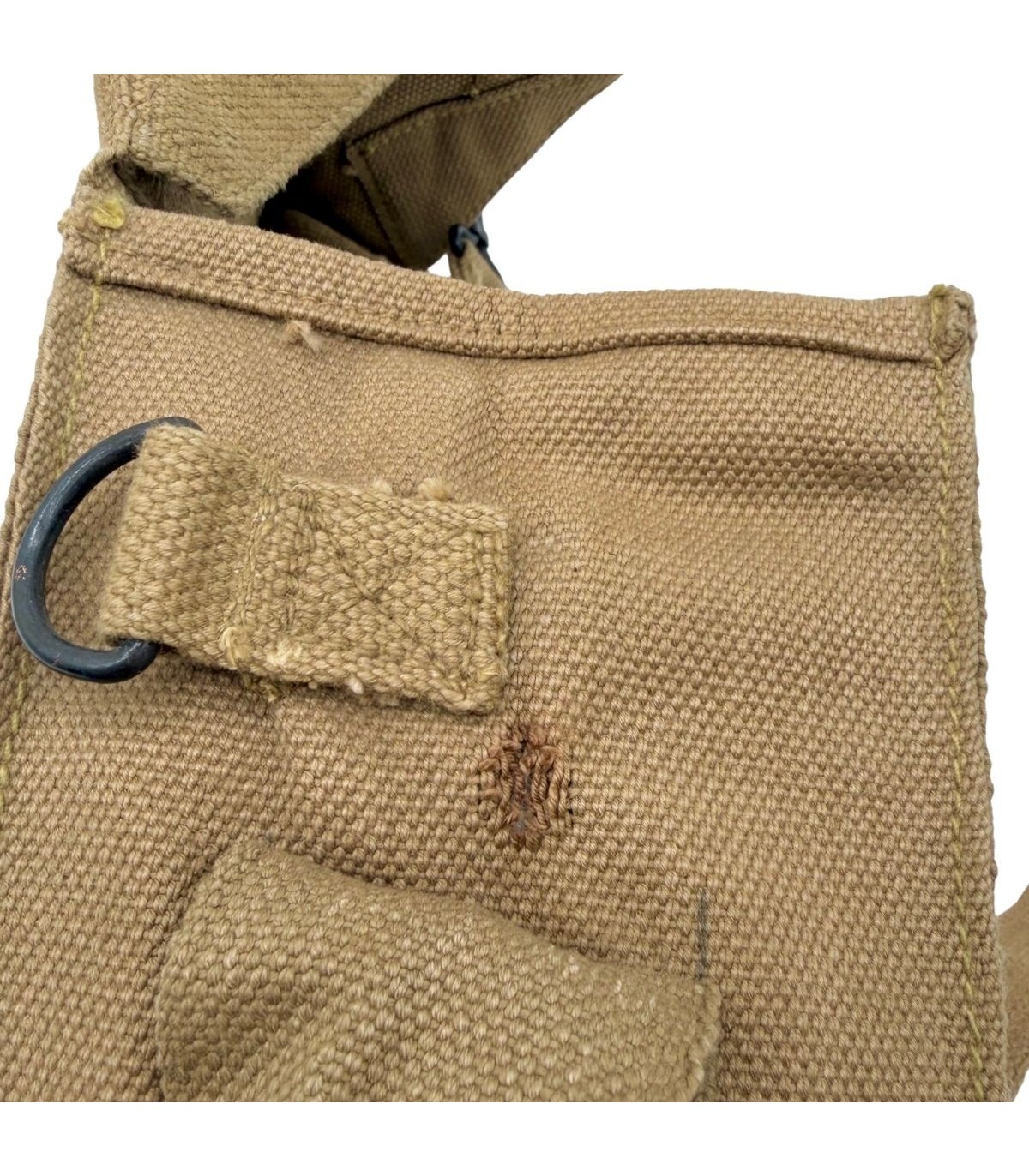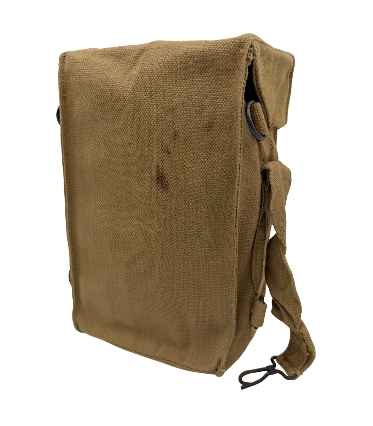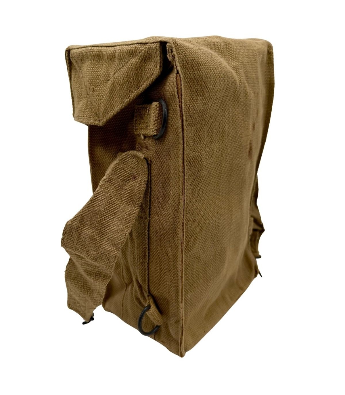 Cette musette est la définition même de la pièce "propre" pour compléter un mannequin ou une vitrine thématique sur l'équipement de la fin de guerre. Sa rareté réside dans sa fabrication britannique, très recherchée par les amateurs de variantes de l'US Army. C’est un objet qui raconte une histoire de logistique et de survie, tout en restant dans un état de fraîcheur que l'on ne croise que très rarement aujourd'hui. C'est un investissement sûr pour tout passionné de militaria authentique.