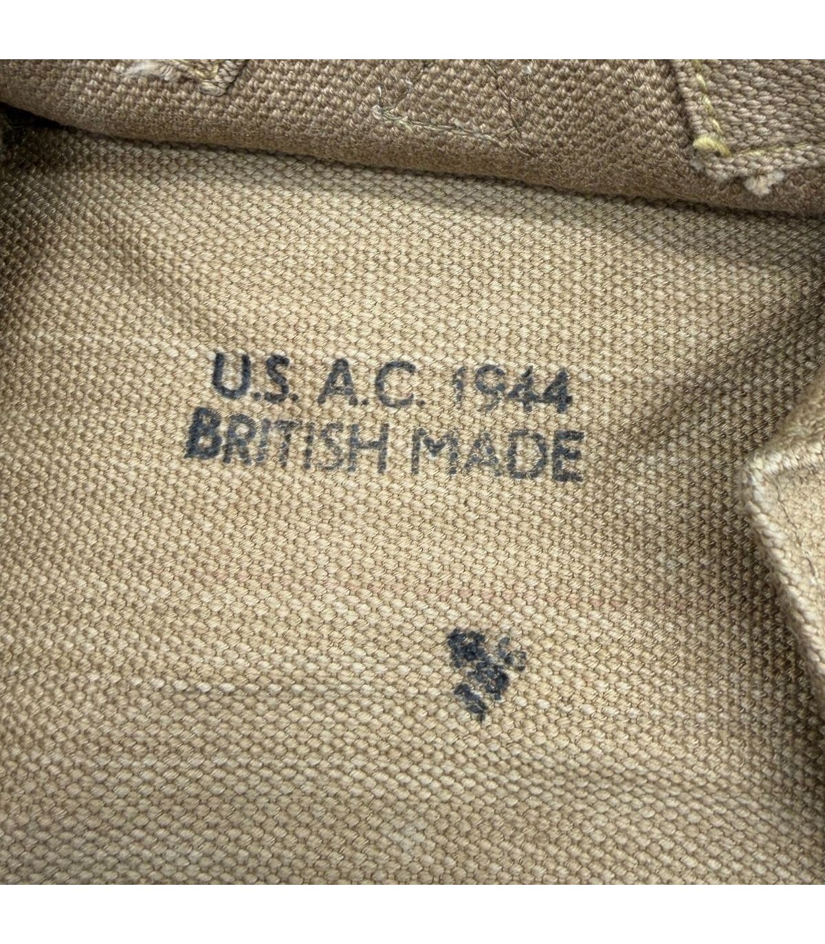 Rare musette General Purpose fabriquée en Grande-Bretagne pour l’US Army dans le cadre du Reverse Lend-Lease. Cette variante se distingue par son marquage “BRITISH MADE” accompagné du Broad Arrow, symbole du contrôle britannique. Une pièce peu courante, typique de la période de la Libération.