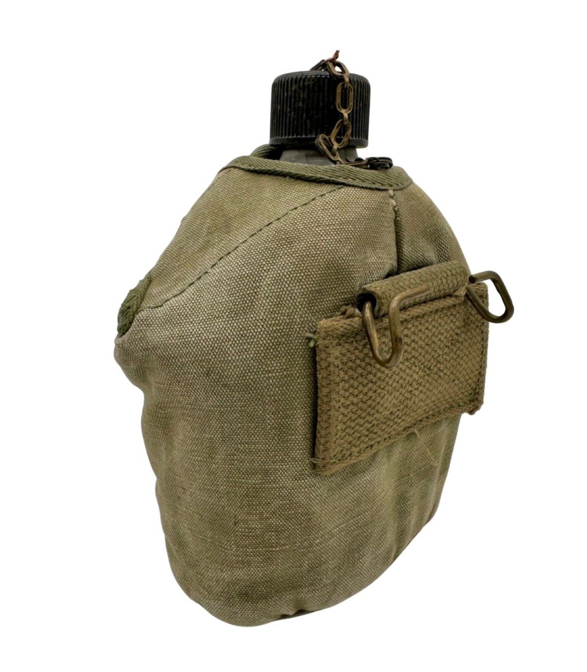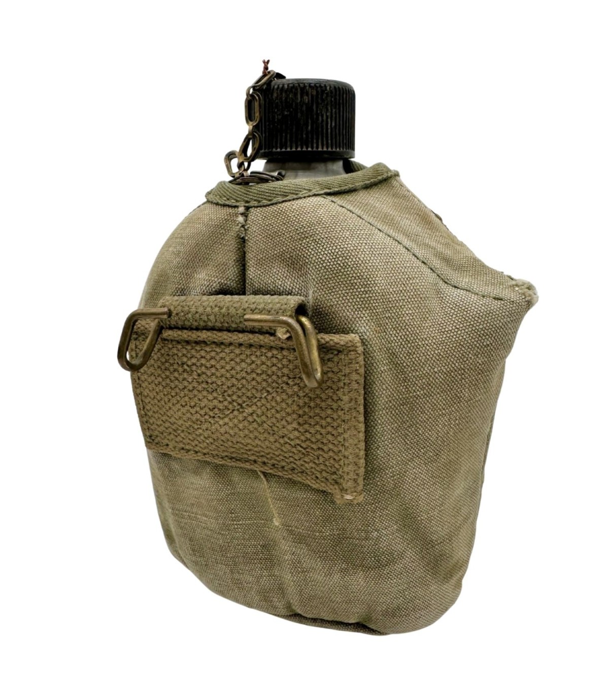 Cet ensemble de gourde US Army est un exemple rare de cohérence historique. Alors que de nombreux sets ont été dépareillés au fil des décennies, celui-ci réunit un bidon et un quart, tous deux datés de 1945, année symbolique de l’apogée de la production américaine durant la Seconde Guerre mondiale. Parfait pour compléter un mannequin ou une vitrine thématique dédiée à l’année de la Victoire.