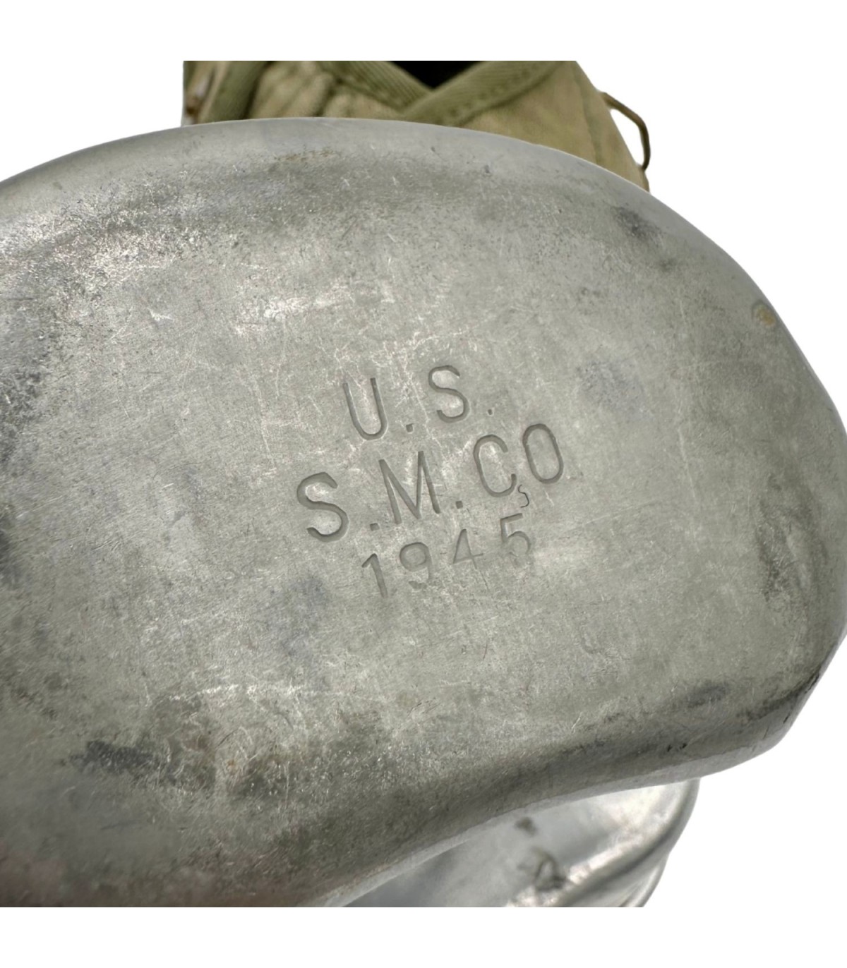 Le Bidon : Une production de S.M. Co (Southeastern Metals Company) datée de 1945. Ce modèle en acier inoxydable (ou aluminium selon finition) présente des soudures propres et une structure saine, témoignant de la qualité de fabrication de ce fournisseur majeur de l'US Army.